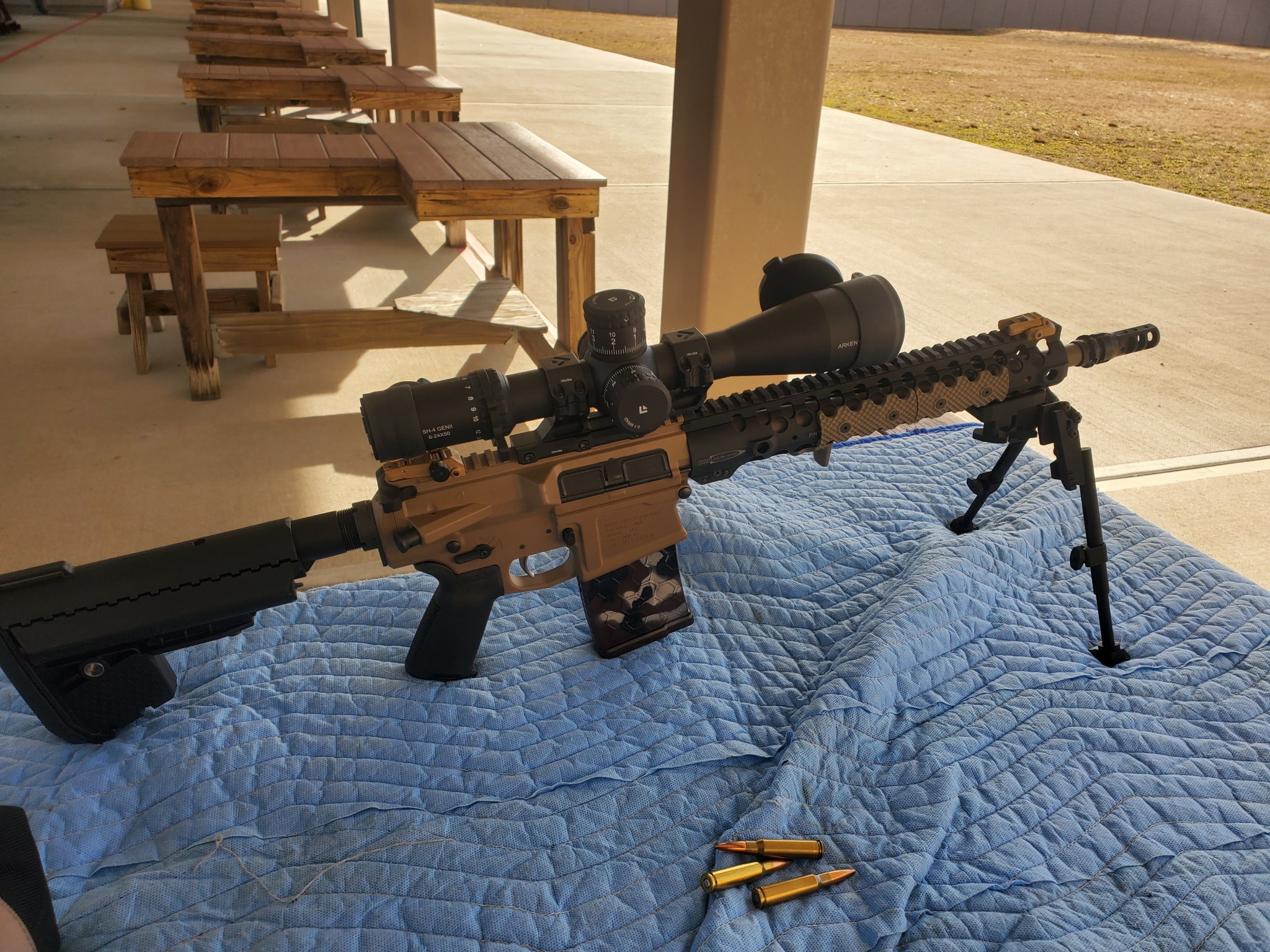 It was always a solid .75-1 moa gun, better on occasion. Now we're deep in 2 moa territory. Started playing with the buffer/spring setups again and got it back down to about 1 moa. Still a 1:30-2:00 ejection pattern and still a pile of gas in the face suppressed. But, to their credit it function with all but one of six loads I shot. Federal premium with the berger 168 hybrid hunter was the only one that caused a malfunction. Ammo is way hot for a gasser.