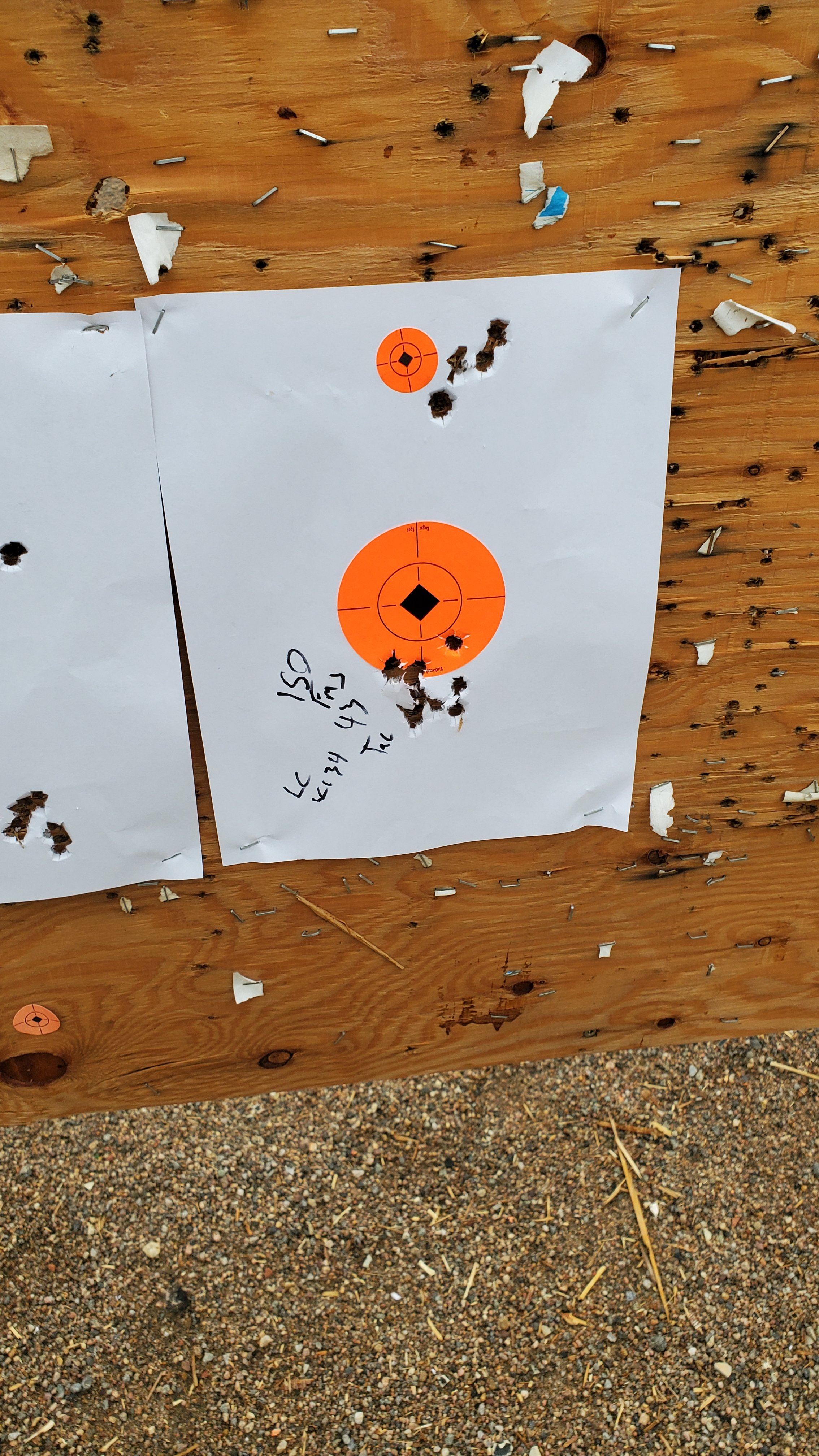 Bottom group is 43gr of Tac under 150 FMJ, LC match brass and CCI 34s