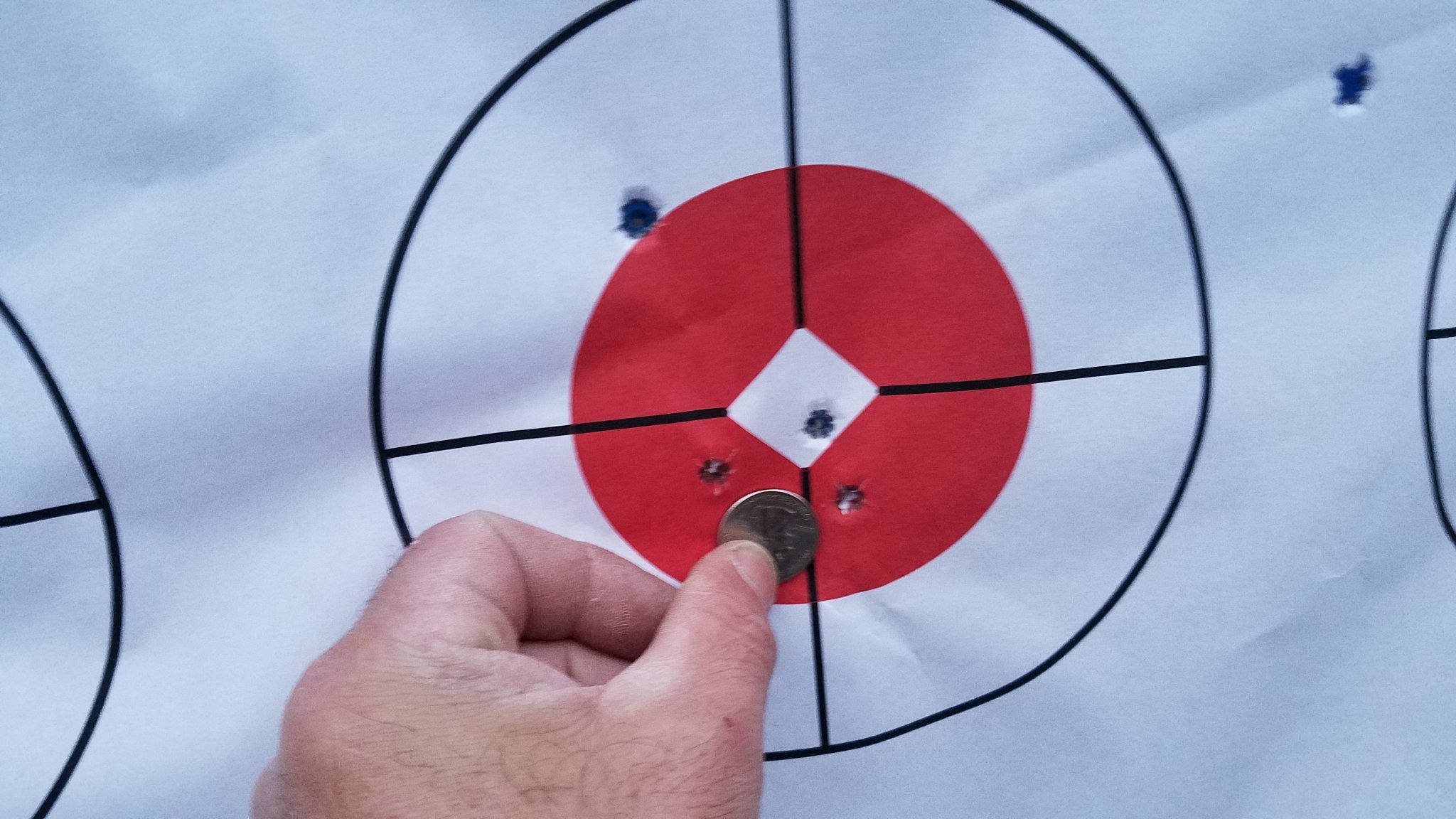 First group is cold clean bore. First shot middle right then the next 4 are high as it shoots in. Adjusted .1 mil down and drilled the hole