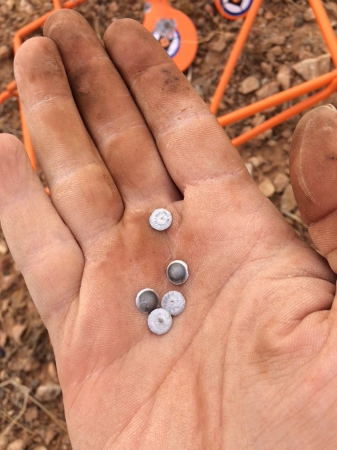 At 315, the round is basically coming down like artillery with 155 inches (13 feet!) of drop and with a 5mph it needs 2MILS of hold. I used both the steel spinner gong and a 4.5 inch self repairing polymer gong. When hitting the gong at that distance, they just barely hit it and fell off right in front of it making a neat little pile of flat bullets; at 243 they still ricocheted off.