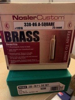 I have a set of 338-06 RCBS dies to sell. There is a box of 25 Nosler un-fired brass to go with the sale. The Brass was over $40 when purchased a few years ago. Looking to get $75 for both, including shipping.