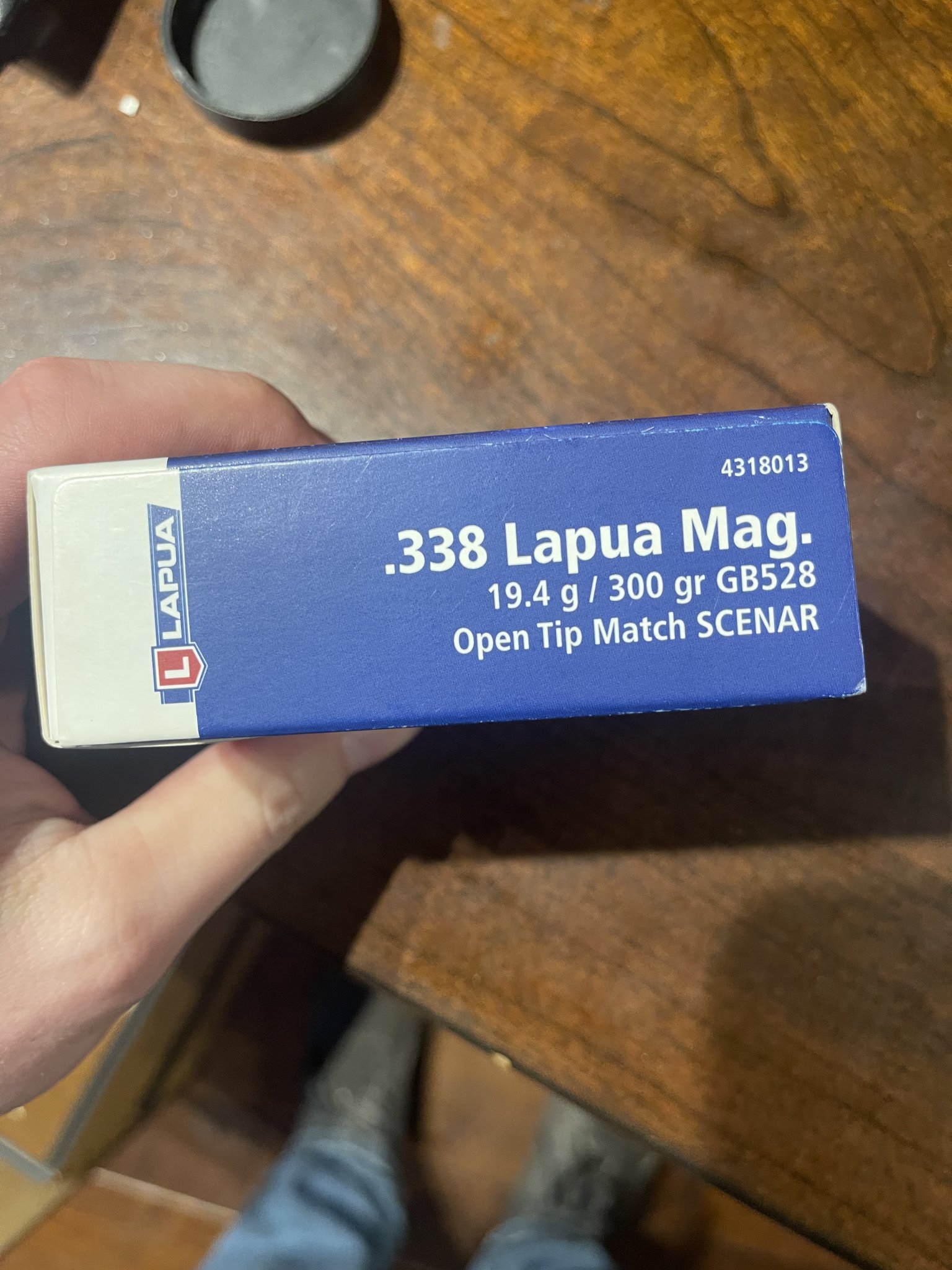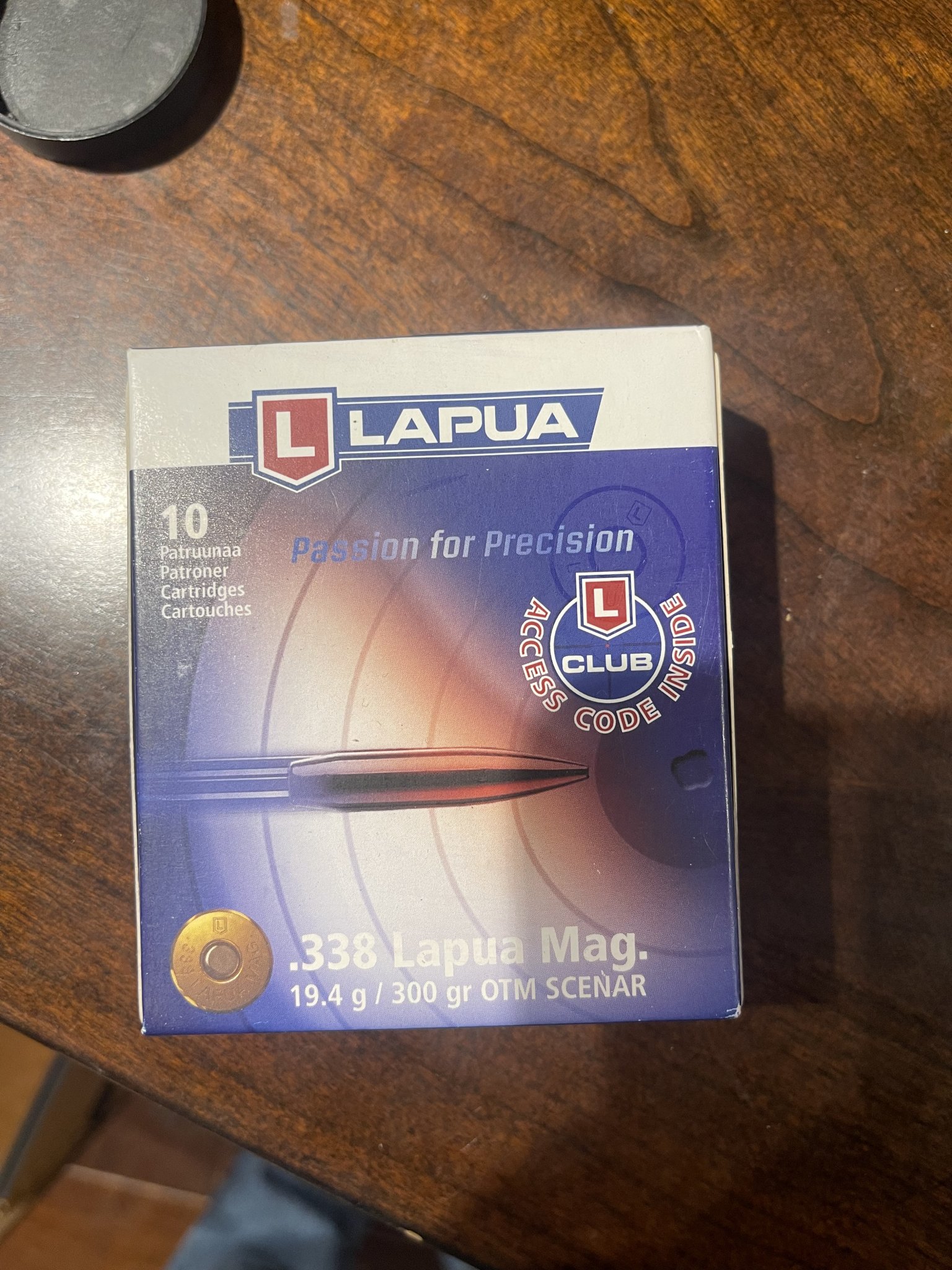1 box Lapua 338 lapua 300 grain scenar otm-10 round box-$45