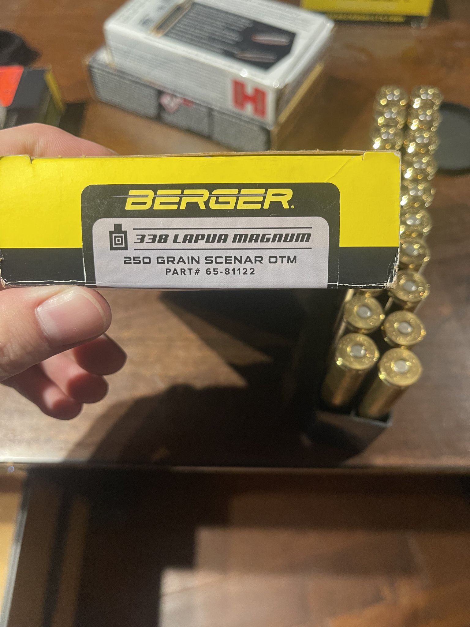 1 box Berger 338 lapua 250g scenar OTM 20 round box- $65