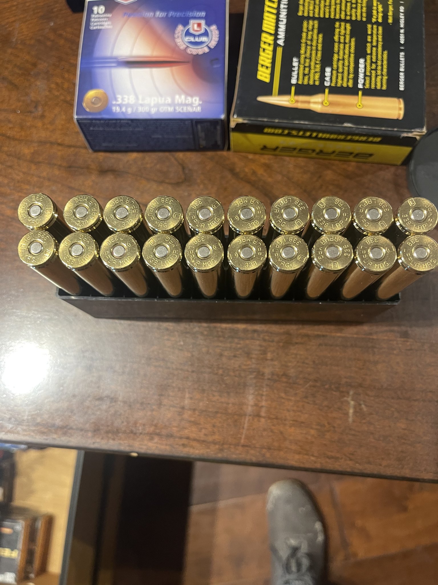 I also have 50 once fired Hornady and 50 lapua cases in 338 lapua.