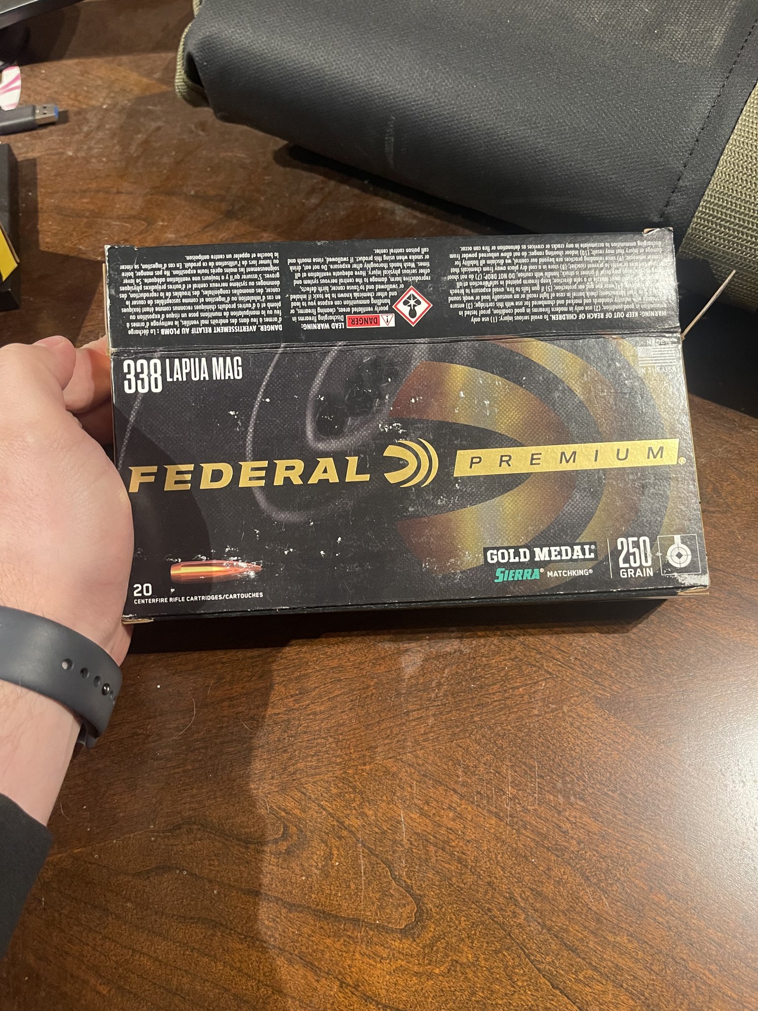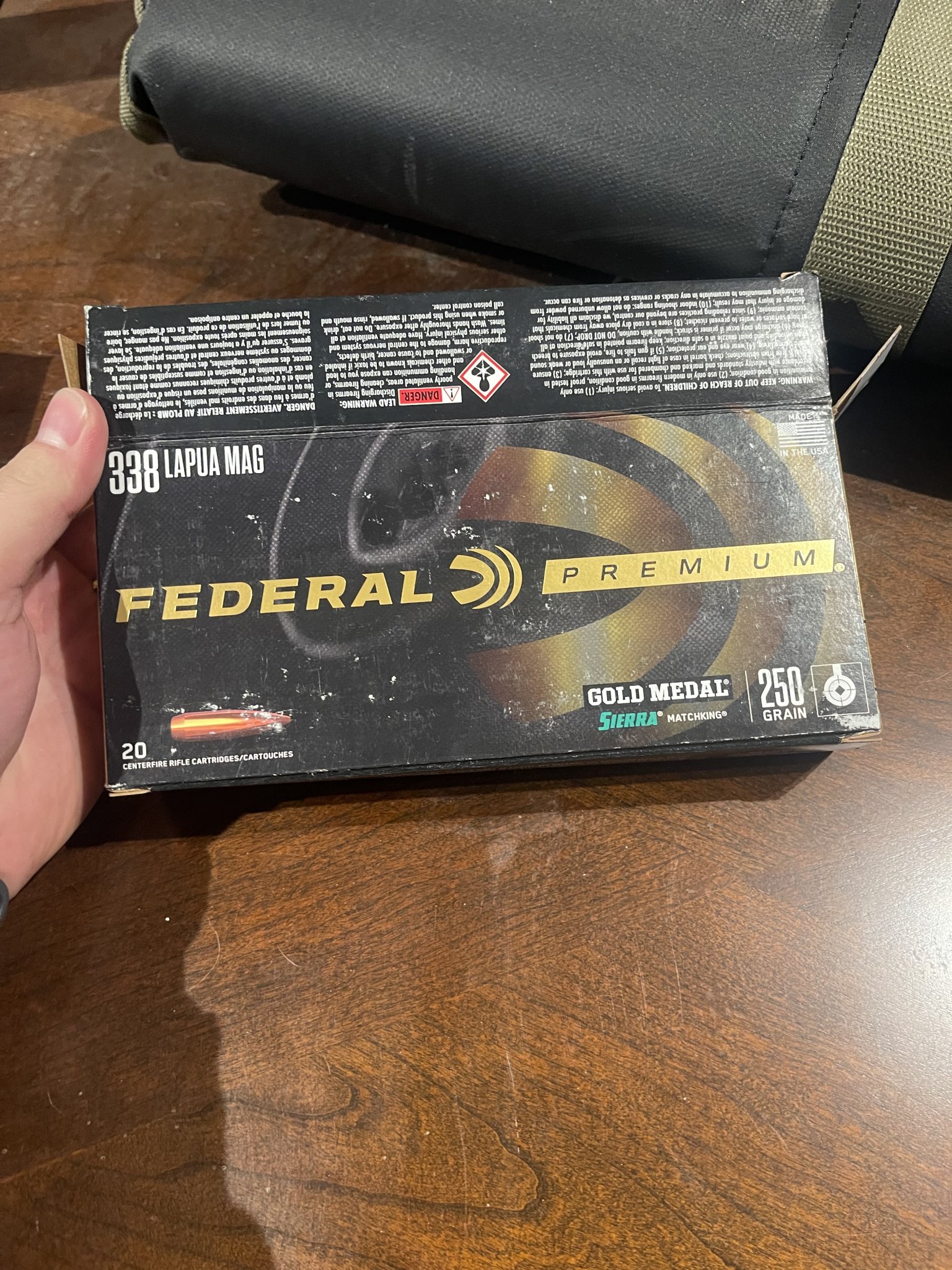 1.5 boxes 338 lapua federal GMM 250 grain 35 rounds/1.5 boxes-$150