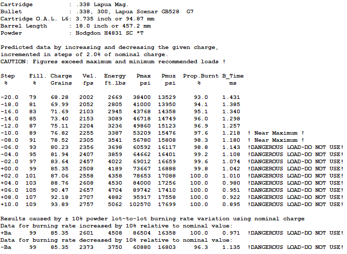 This barrel however, there is no node to be found until I get up to 95g, and running 2950fps. That is about 2 full grains into signs of pressure. I tested powder charges from 88g to 96g. I tried seating depths at .005 apart from the Lands out to .100.