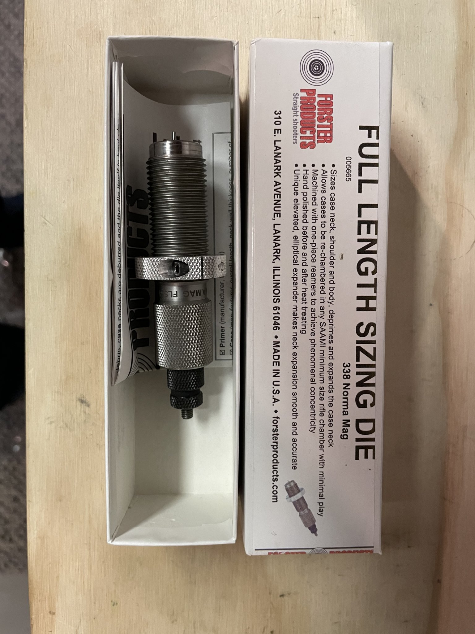 Wanting to sell my Forester Products Full Length Sizing Die and Micro Seater for 338 Norma. Will sell both for $175, which includes shipping.