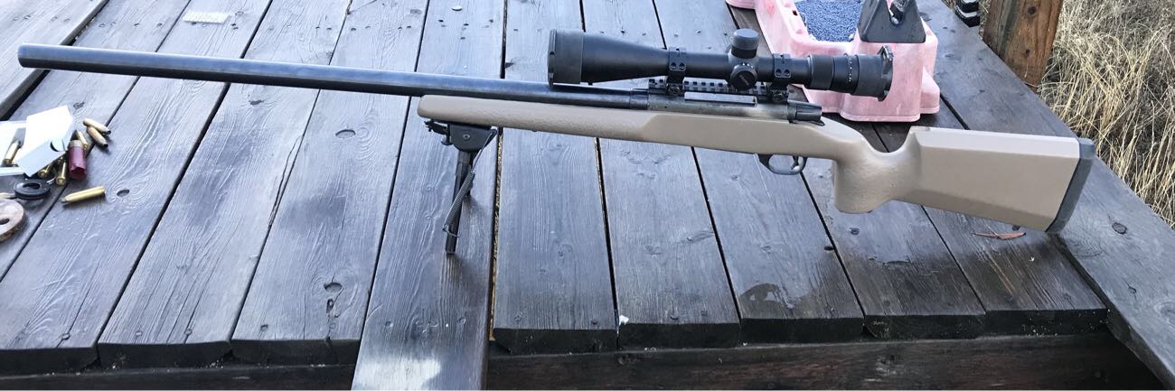 Last year I had a Weatherby Vanguard in 300wm that was ready for rebarrel. I wanted to go 338 edge but Action is a bit short and I wanted a repeater. Friend had a 338/375 ruger reamer I could use. So I ordered a Pre-Fit barrel nut barrel (howage) from McGowen in 338RCM 1:9 30” straight.