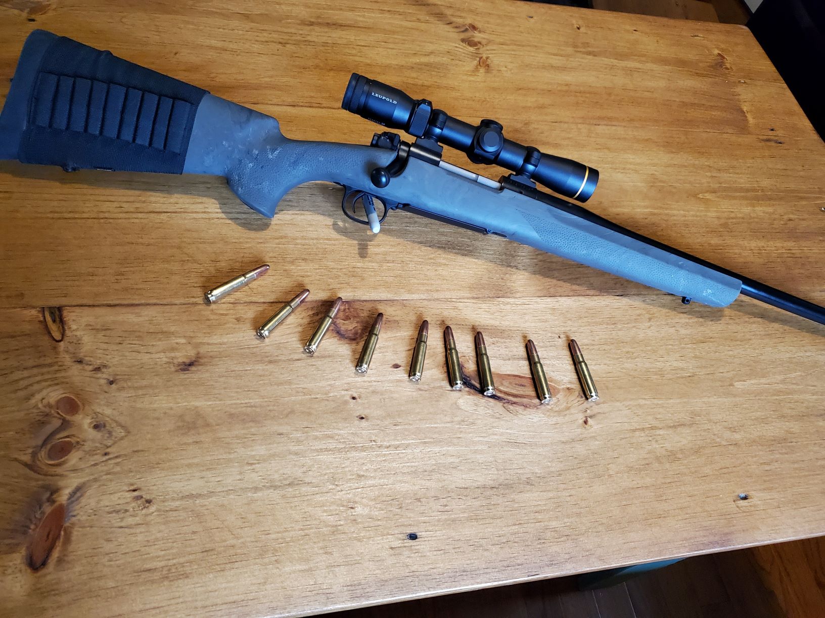 Winchester model 70 CRF chambered in 358 win. Slick action, shilen select match 1-12 twist barrel 22 inch with brake. Matched muzzle brake reduces recoil by 50 %. Cere koated , Hogue full alum bedding block stock in OD green. Leupold mounts and rings. Rifle built by east coast precision. Lots of brass and bullets and redding die set. Top shelf hunting rifle. Round count 50 powder puff break in rds and 77 field rounds. Shoots factory Hornady 200gr sp and 250 rn great. PRICE DROP Scope not included