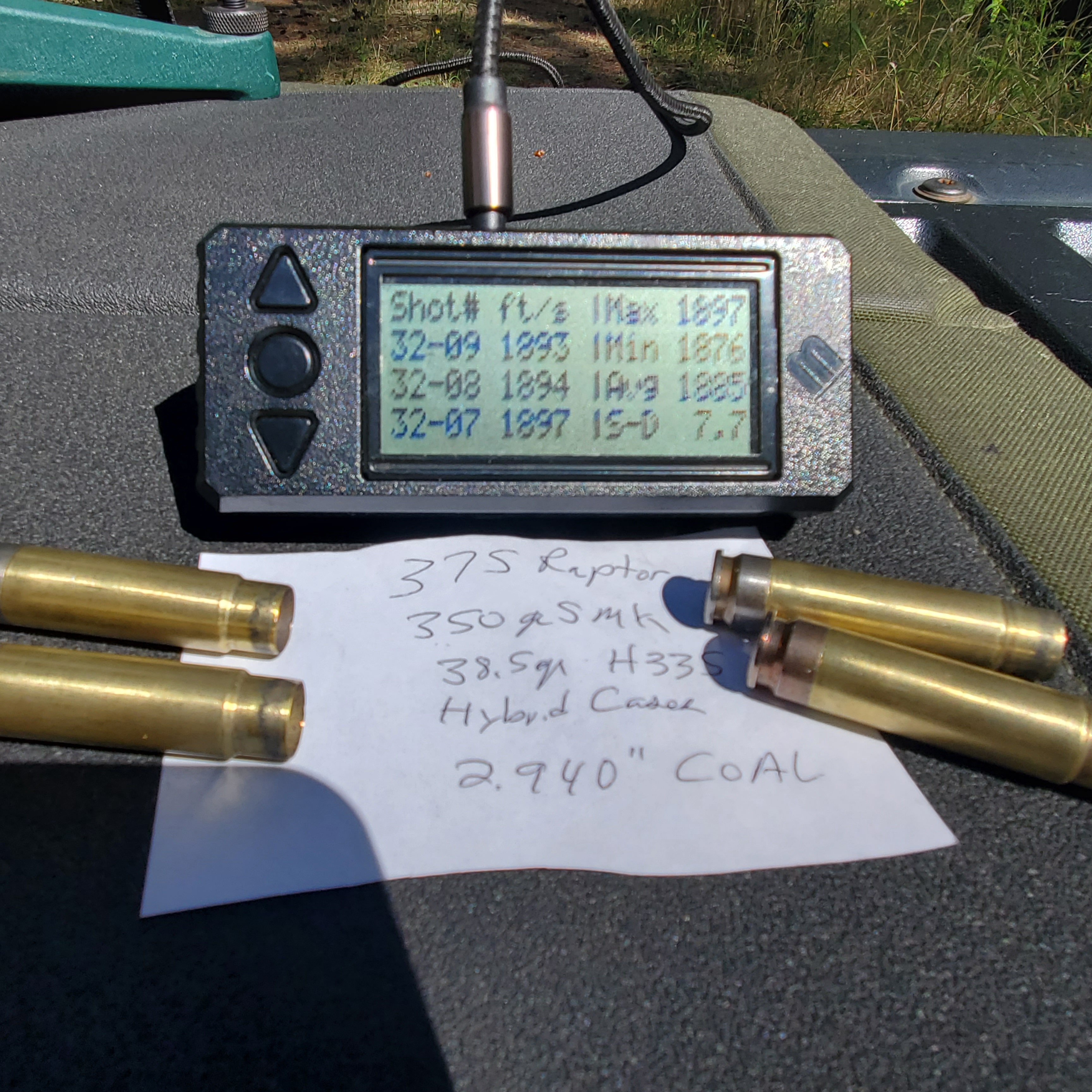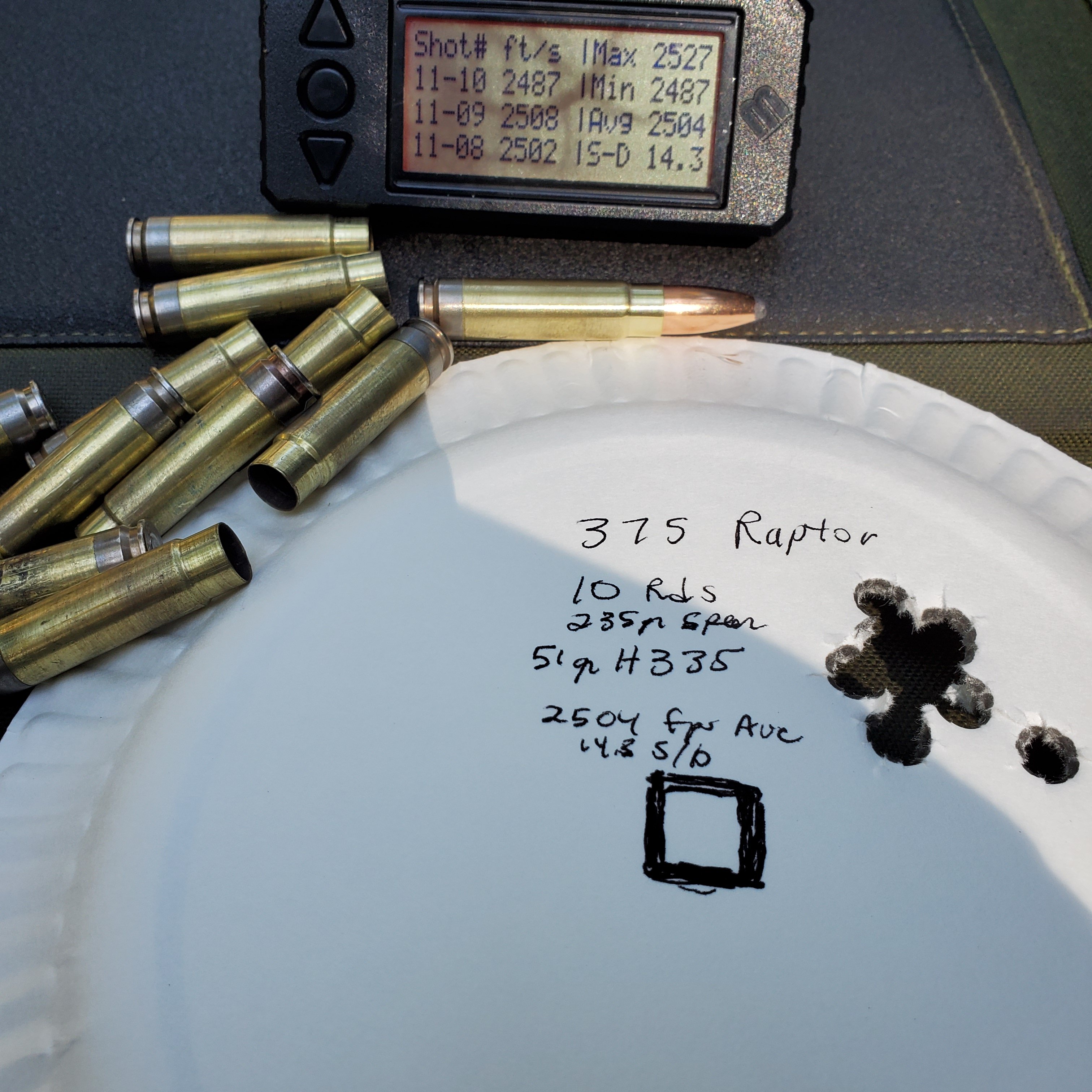 So I shot the newly built 375 Raptor AR 10... supers only. Not interested in hunting anything with subs, but I shoot them for plinking fun in many calibers.Have you decided on a any loads yet? I built a 16" midlength gas and have shot a total of 60 rounds. The only recipe I've tried so far is: