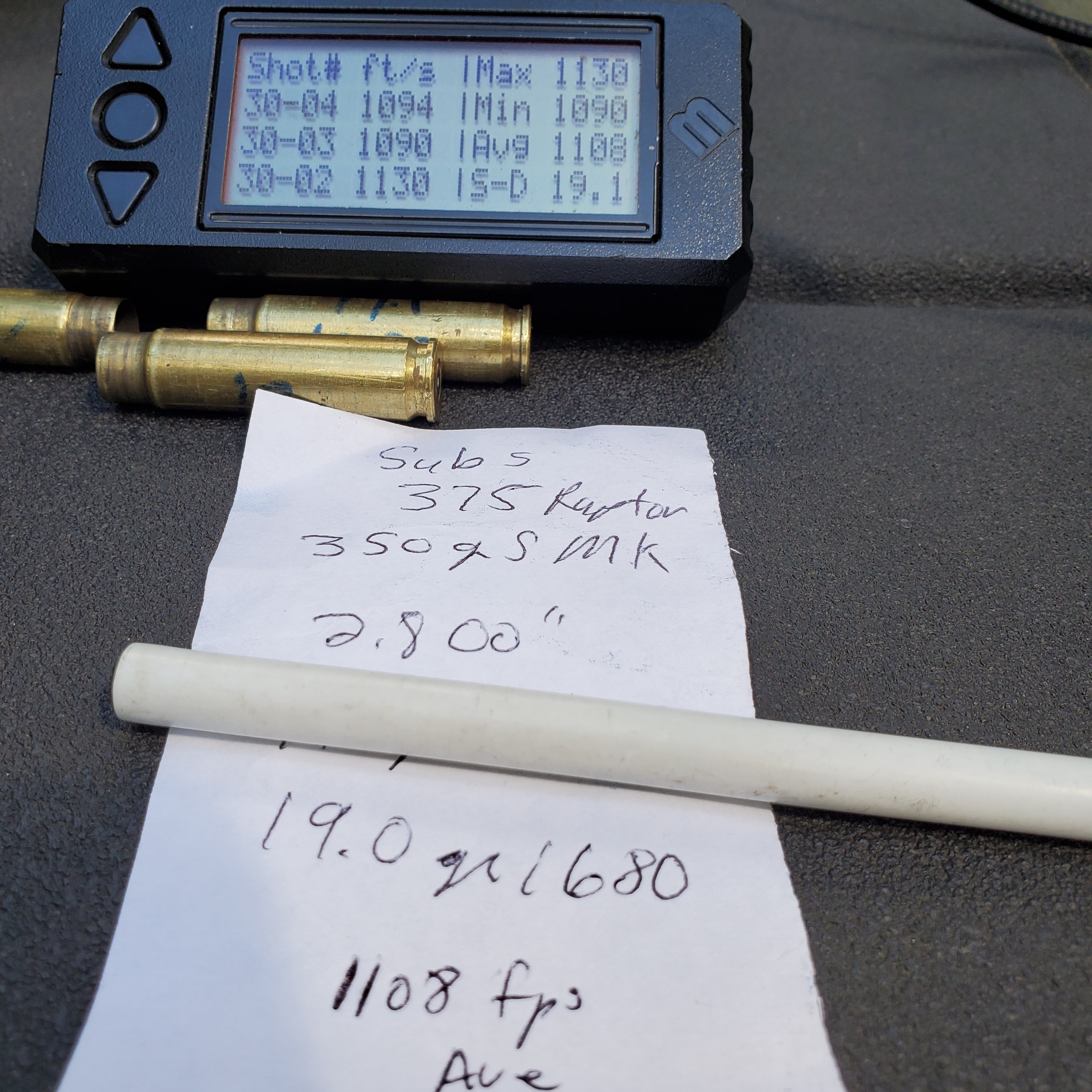 Have you decided on a any loads yet? I built a 16" midlength gas and have shot a total of 60 rounds. The only recipe I've tried so far is:So, to challenge myself ... I'm building a 375 Raptor...the 20" long barrel is in the mail, but dies, and bullets haven't shipped yet.