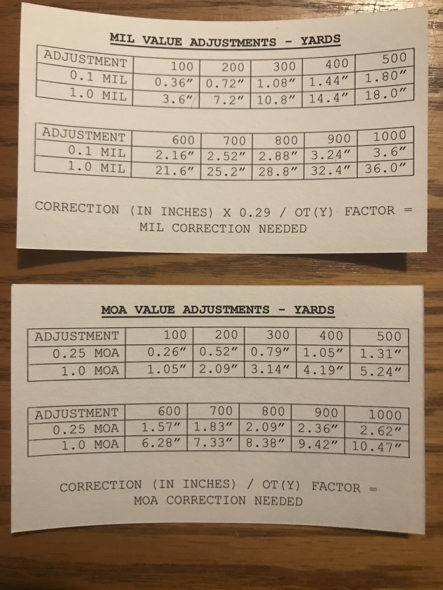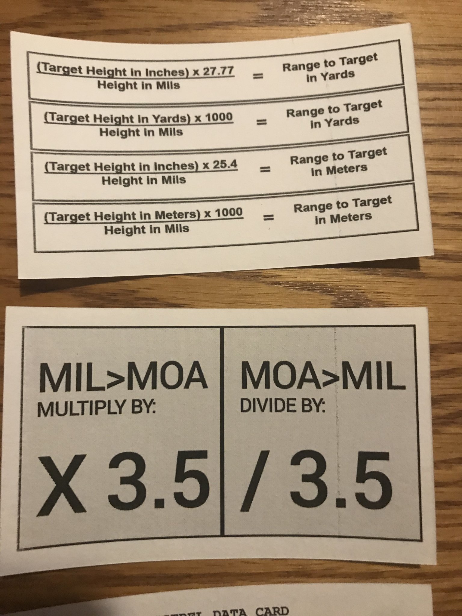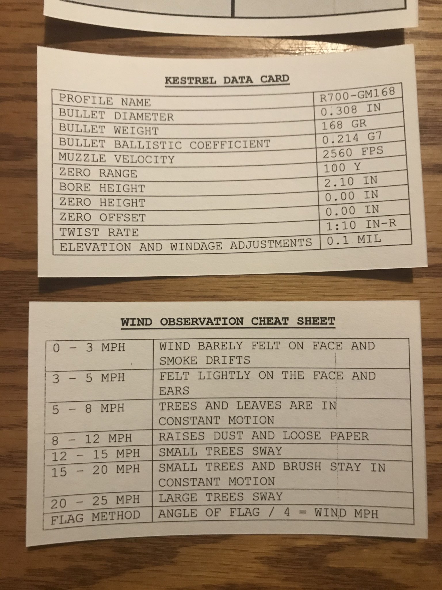 The reference pages are for me to print, laminate, and hole punch, then connect together to have a handy data book. The DA chart and ranging card will be a part of this. My hope is to have one of these reference page packets, with hard dope 3x5's and backup data, etc, as well as a few blank cards, for each rifle, all tucked into a little 3x5 wallet basically. That way you can grab the data for the gun you're using and have everything you'd need.