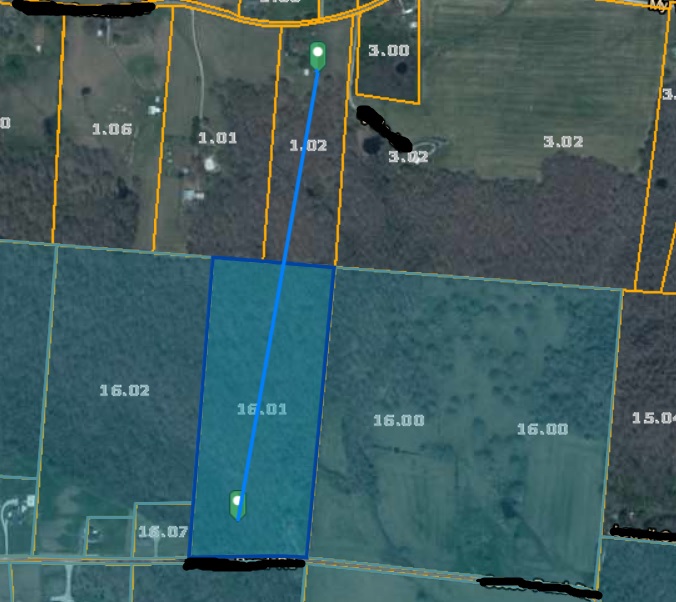 Here's a look at the property. From the first marker (roughly where I plan to shoot from) to the back property line is 450 yards and the line ends in the back yard of a neighbor, 780 yards away.