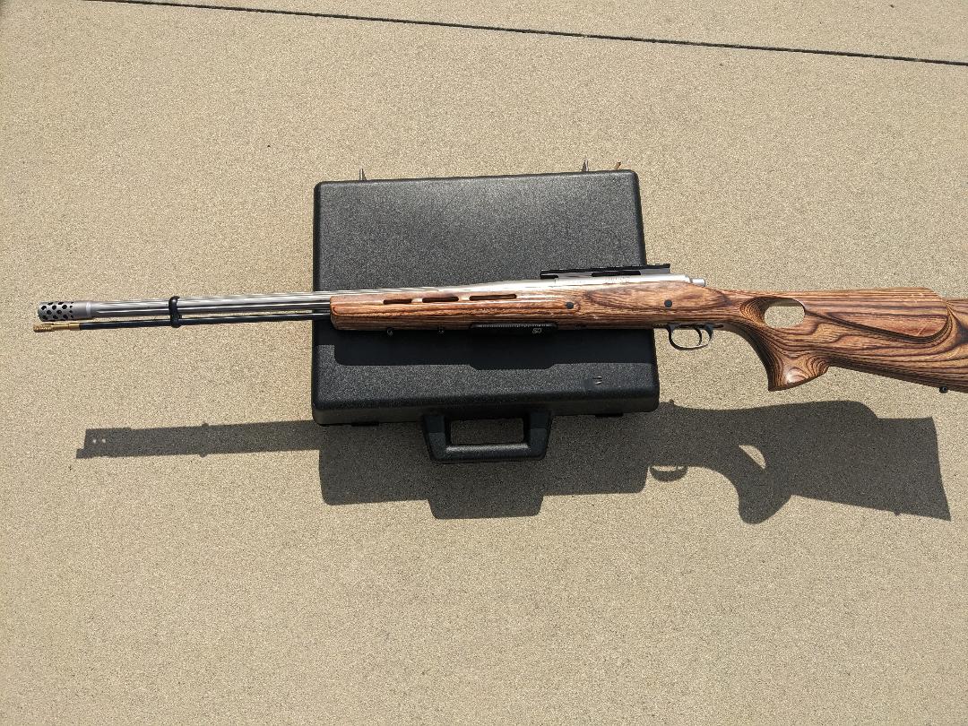 Takes 209 primers, (CCI magnum and Winchester are best) and shoots non sabot full bore bullets from 250 to 310 grain. MV can be easily over 2600 FPS and up. Accuracy is phenomenal for a ML and 300 yard shots are no problem. Comes with custom bullet sizer ($280) to size bullets to perfectly fit the bore as many of the LR bullets are minimal oversize and need perfect sizing for best accuracy. Powders to use are RL7 and H4198 with .060 felt wads over powder. Ramrod has the correct jag for pointed LR bullets. Stock is Boyds laminate thumbhole with extra sling stud for bipod and ARCA plate for tripod use. $1900 for everything shipped and might throw in some bullets. You can use 250 hornady FTX, just knurl with flat file and use felt wad or one of the Arrowhead and Parker bullets 275-310 and felt wad. Will include extra Arrrowhead breechplug that must be headspaced when installed.