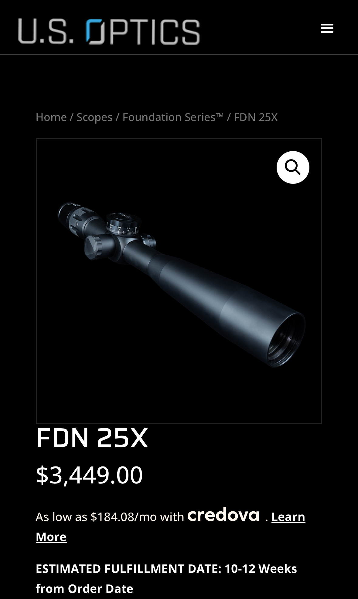 $2000 US Optics FDN25X with lifetime warranty (MSRP for $3600 with TMR3)