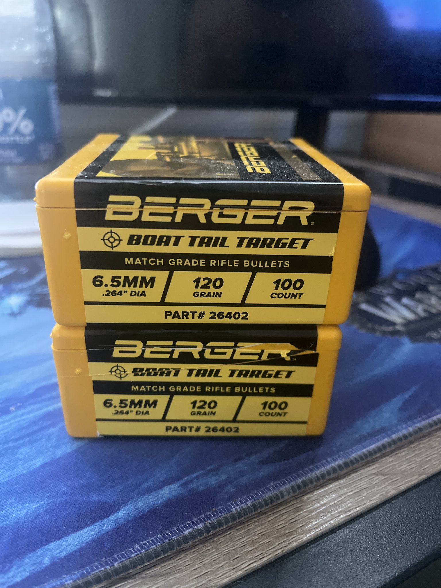 SOLD 6.5 Berger 120g boat tail target 200ct