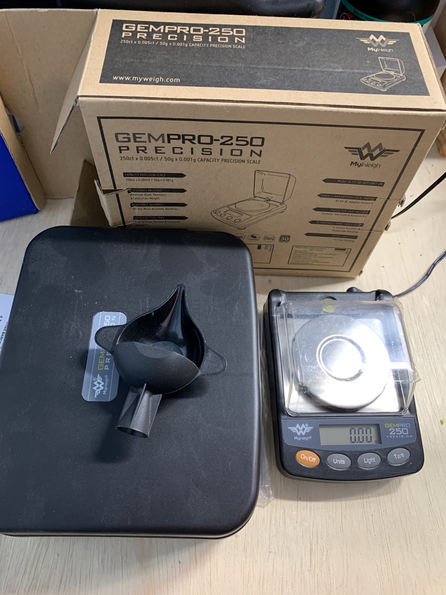 Comes with original box/manual/case, 20gram check weight, rcbs funnel, And power adaptor. Still has plastic wrapping on the cover - SPF