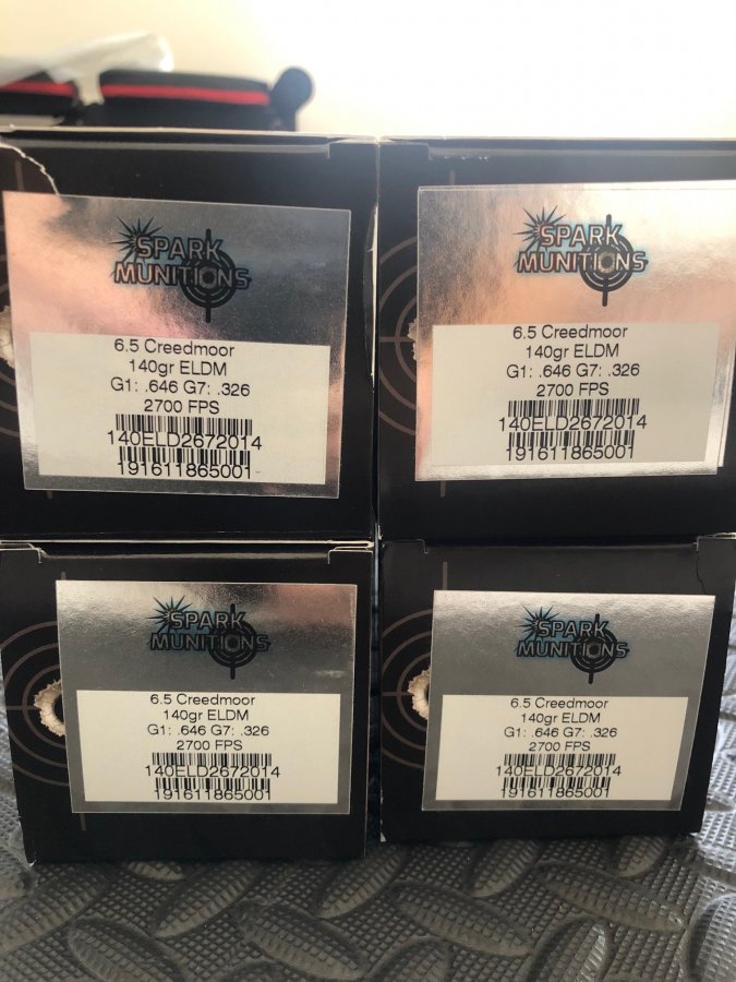 3 boxes of 50 140 grain ELD-Ms (Spark Munitions Match, performed the same as my Hornady brand 140 ELD-Ms) -SOLD