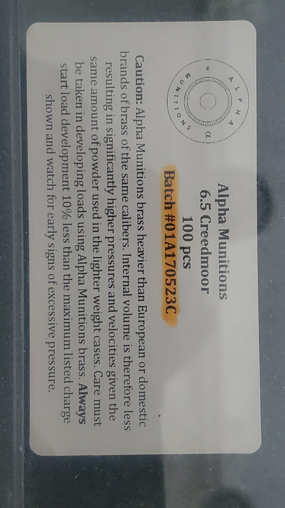 Selling 100 rounds once fired Alpha Munitions 6.5 Creedmoor Brass. All brass has been deprimed and tumbled.