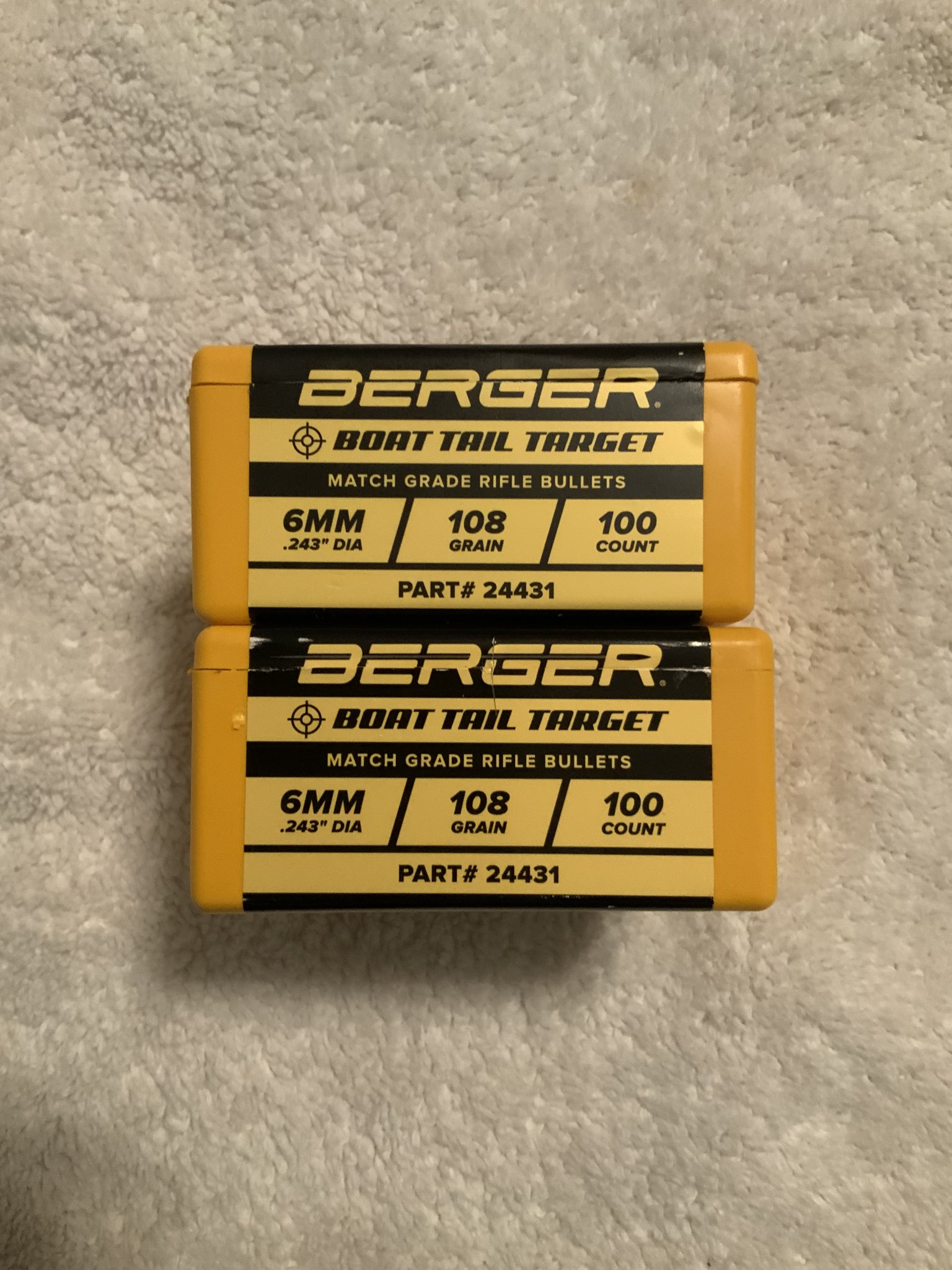 1. Berger 6mm, 108 BT Target (100 count) New Box - Lot# PO1699 - PRICE DROP to $42.00 shipped.