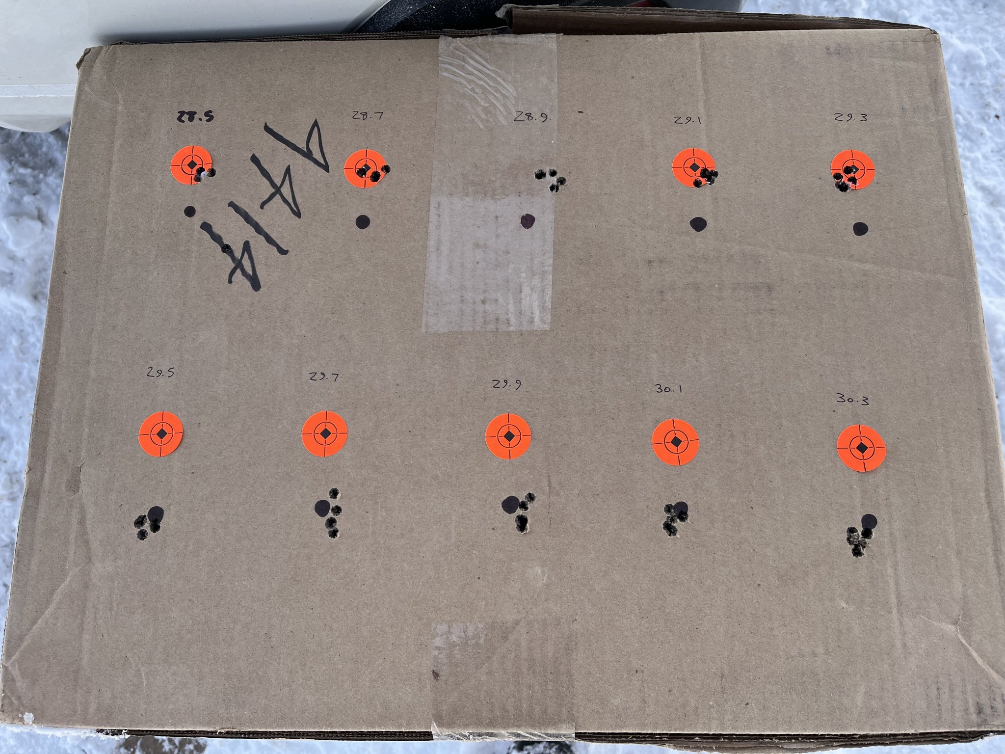 -retest 29.4 to 30.4 in 0.2gr increments (10 rounds each)