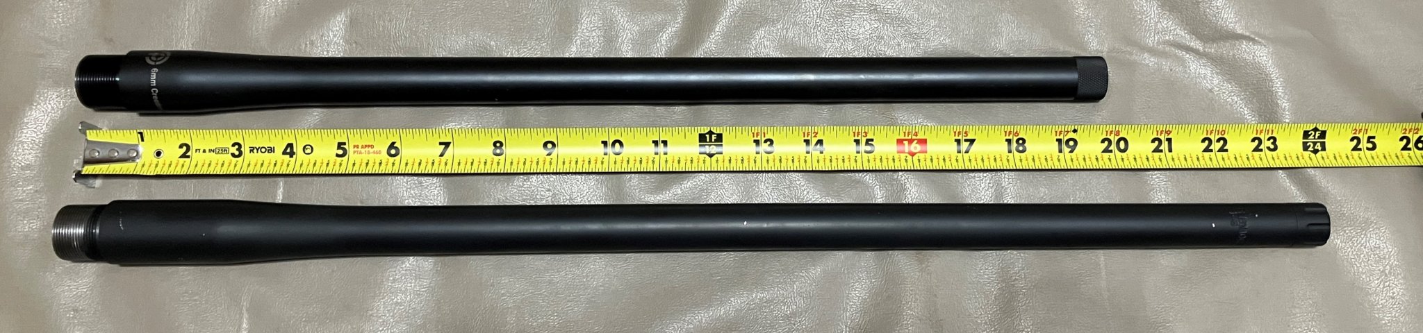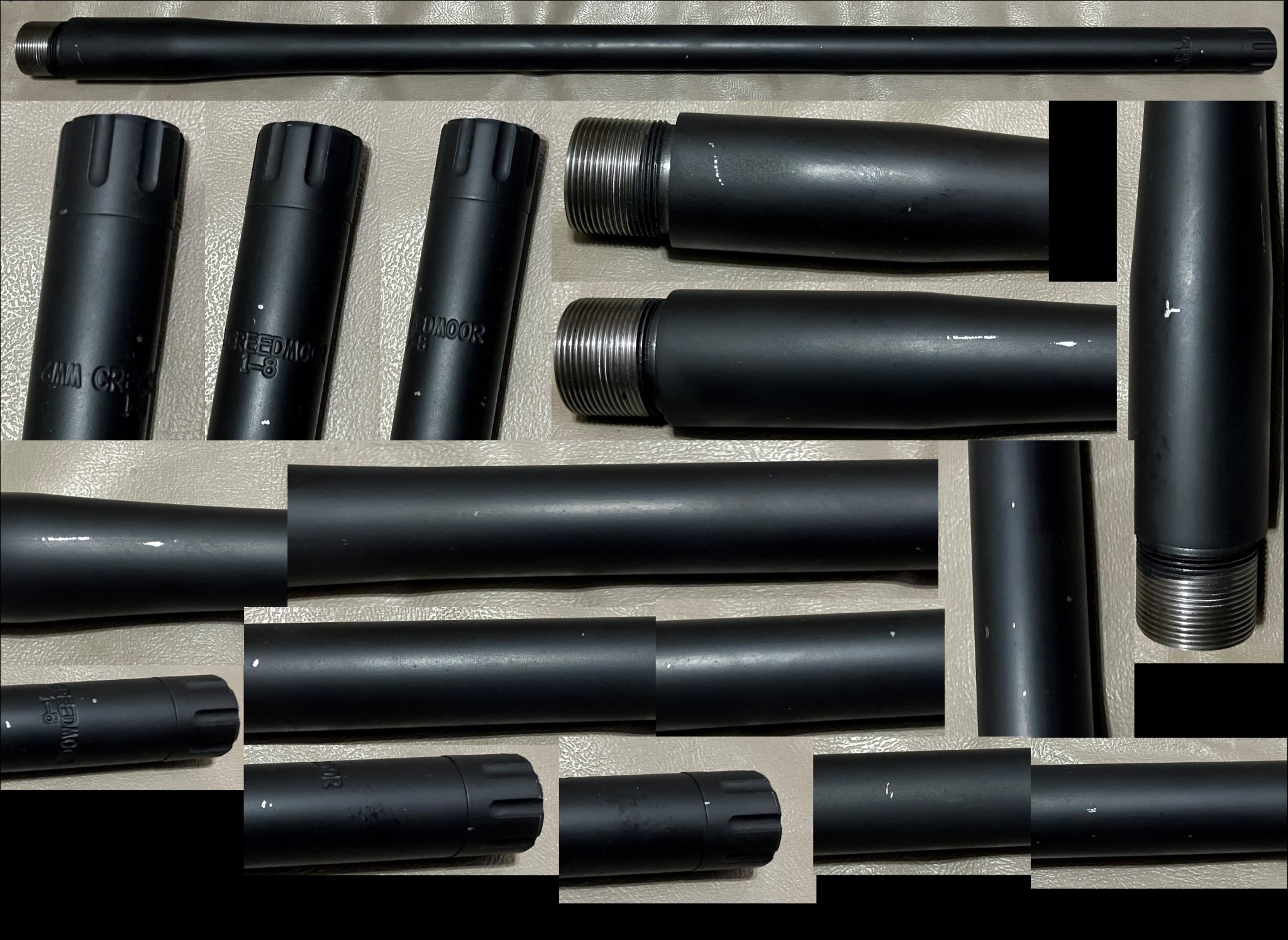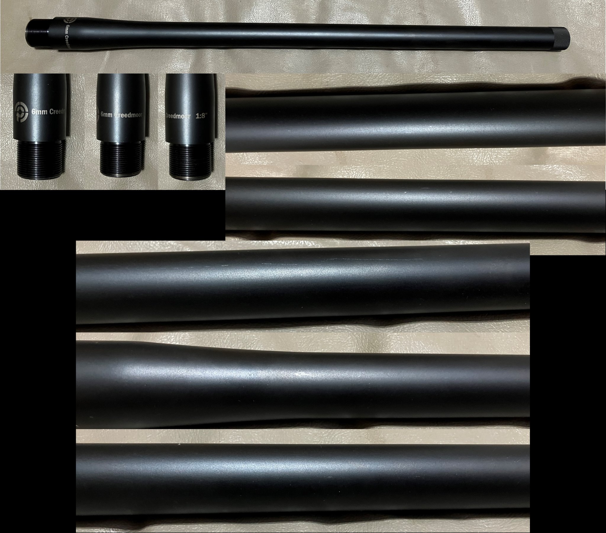 #2 Unknown brand pre-fit 6mm Creedmoor barrel for a Zermatt/Bighorn Origin action. Barrel came of a rifle that was sold as new, I never shot the barrel. Barrel does appear to be new. Barrel is 24” long and measures approximately .845” at the muzzle. Barrel is threaded 5/8-24 on the muzzle and has a thread protector. Barrel is 1:8” twist 5-groove rifling. Barrel has a few nicks/scuffs in the finish (see pictures.) $350 shipped to the lower 48.