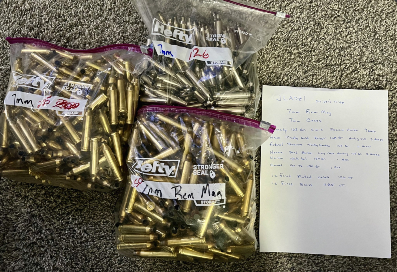 There’s 485 Brass cases and 126 plated brass cases total of 611 cases. All once fired brass.