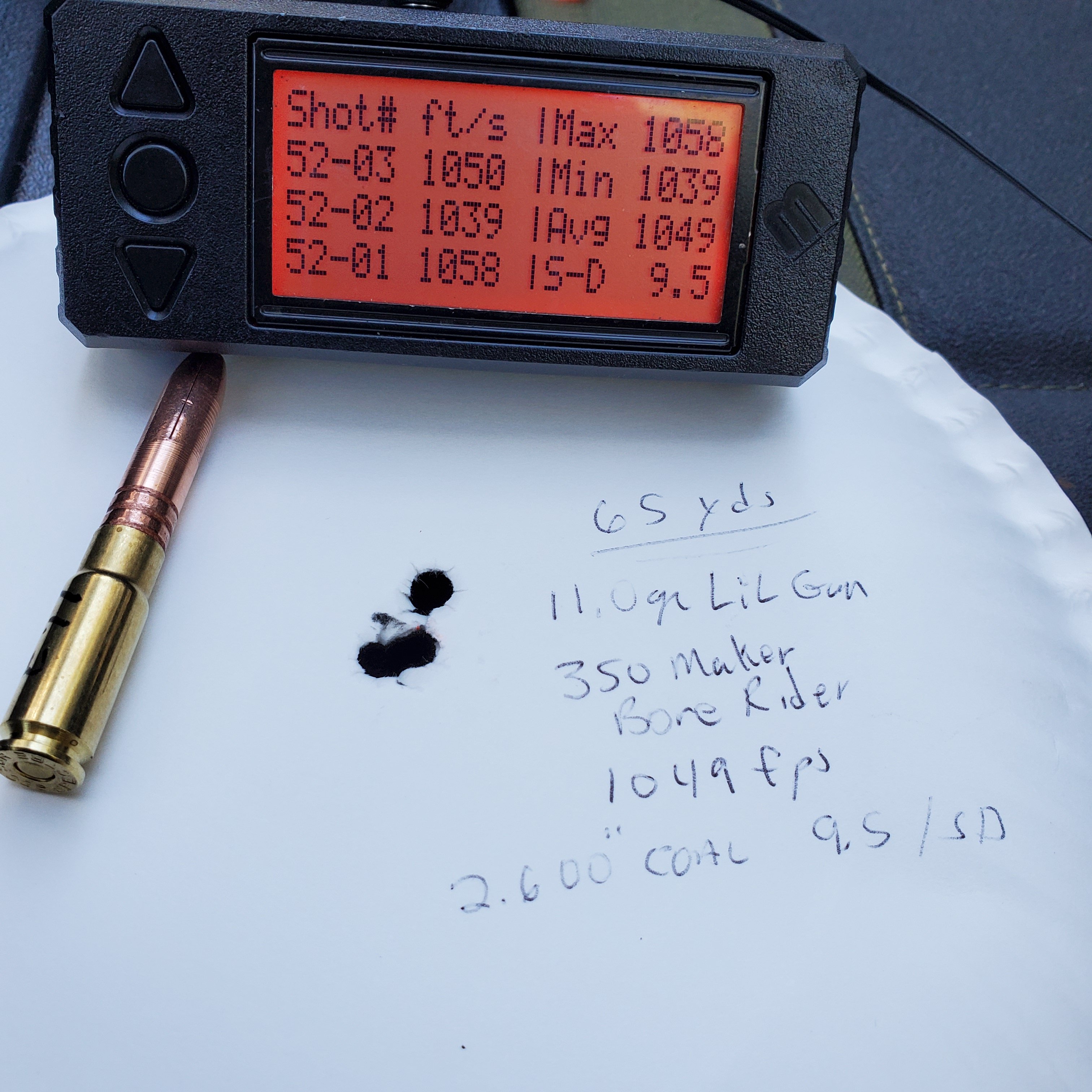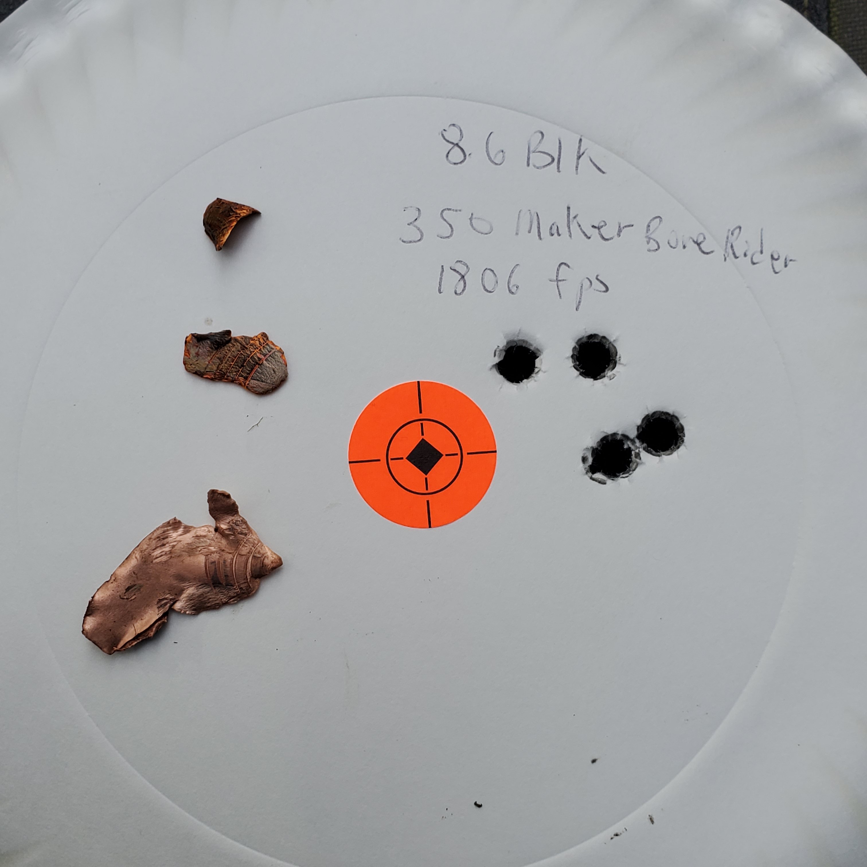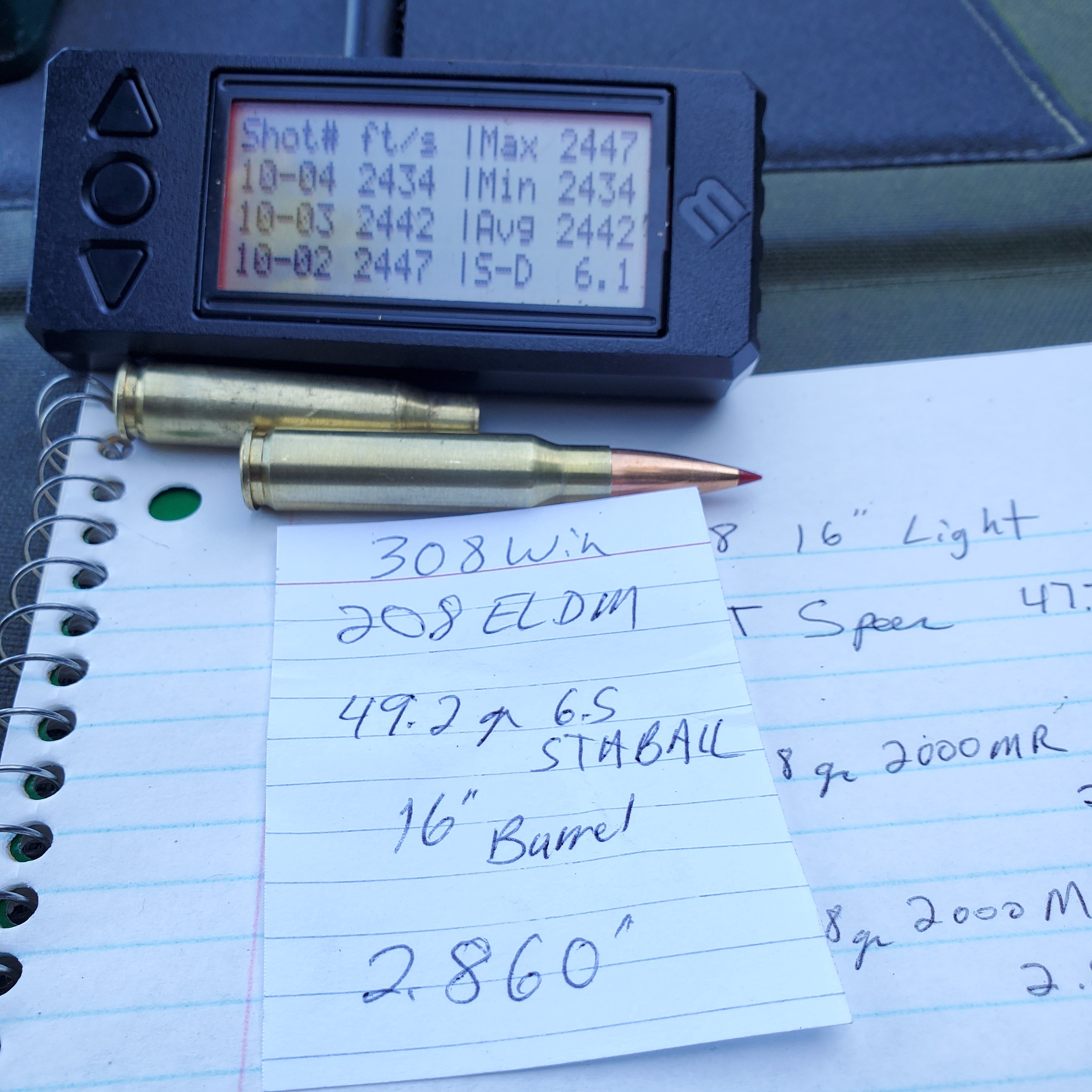 My 8.6 blkout with 6.5 twist and hybrid cases shoots Barnes 160 gr at 2800 fps 200 Speer at 2600 fps.