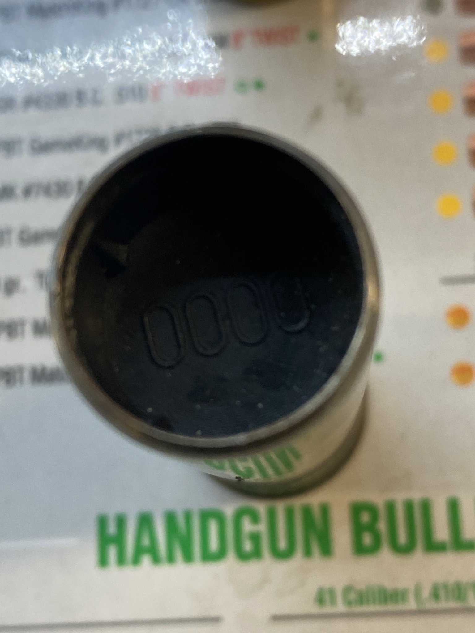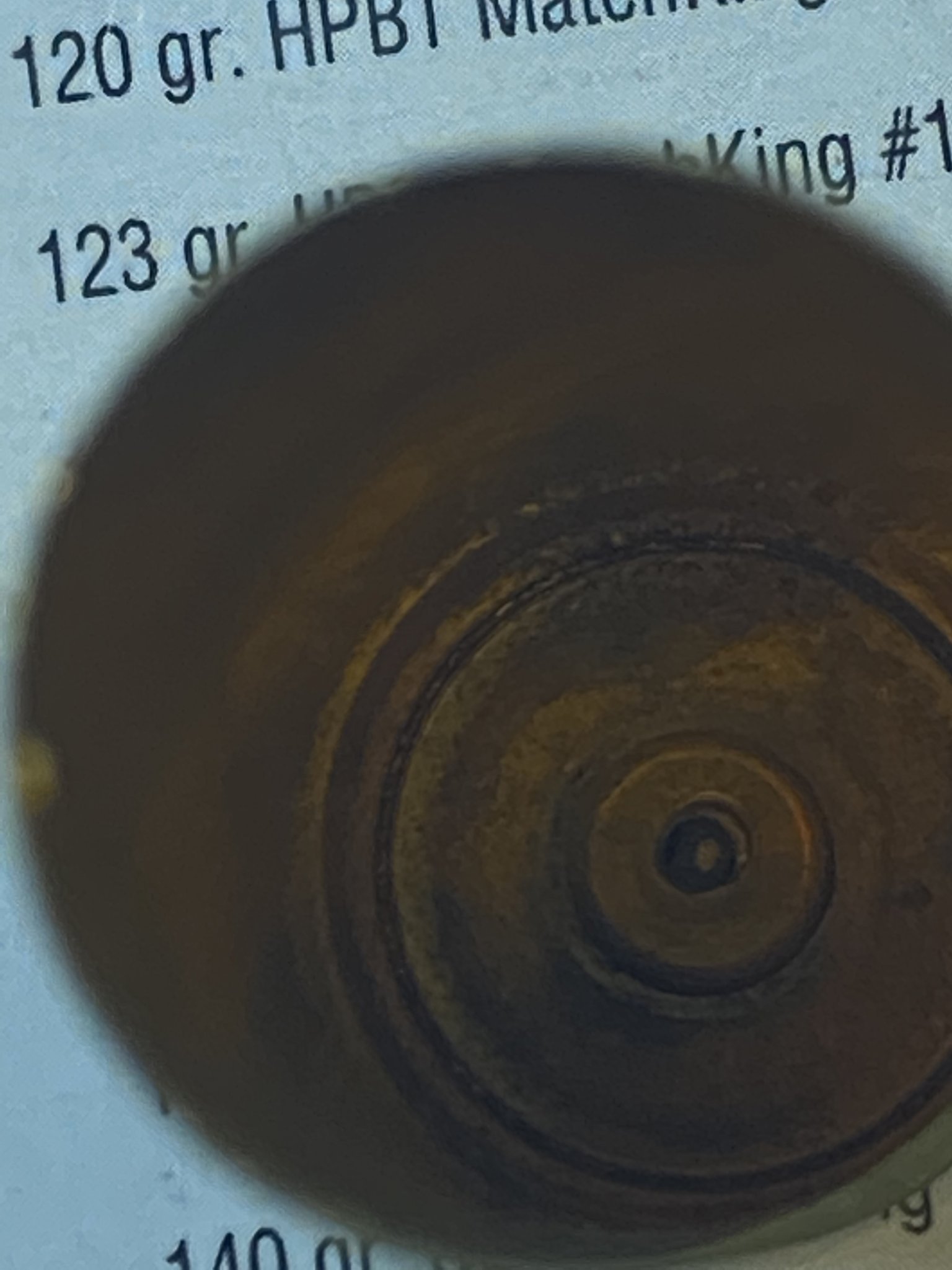 Here the solder is melting and flowing in and around the case head, creating a solid brass base on the shell. Again, a lazy flame and careful application of heat and the thin walls of the case won't be negatively affected. You don't want to heat the case too hot.... red is bad! A lazy flame will work great. You can see the 'bubbles' of the tinning compound, despite the blurry photo.