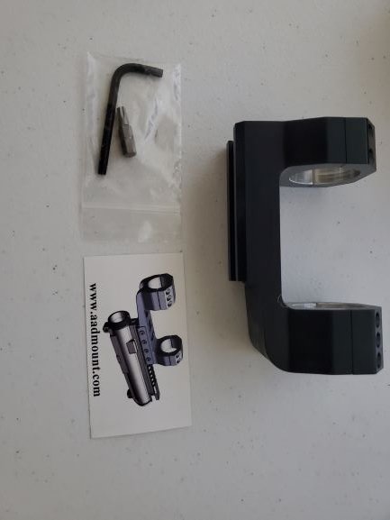 Aadmount, 35mm. This version is the original design with 2.5 inches between the rings. Solid aluminum, fits 35 mm tube.