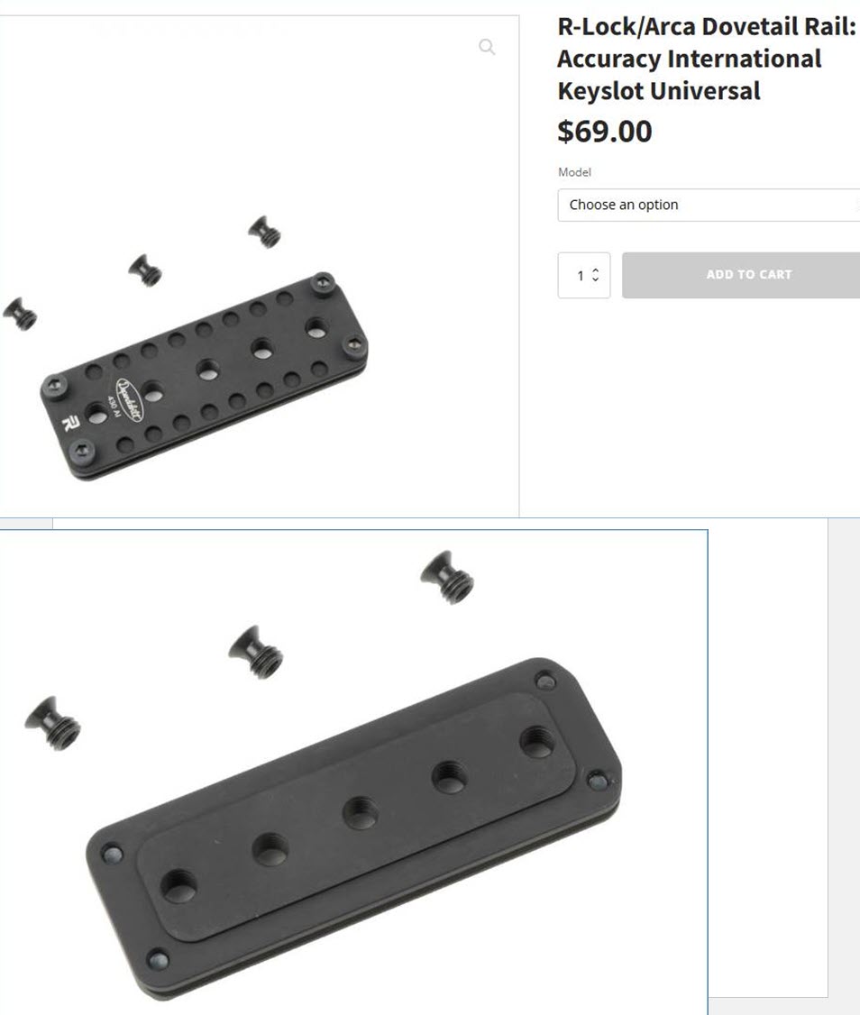 Gunsmiths and vendors were responding with no direct solution, so I managed to find an ARCA plate that was close, but then having to purchase four small proprietary fasteners for Accuracy Internationals keyslot mounting system. Four tiny screws cost almost a Franklin.