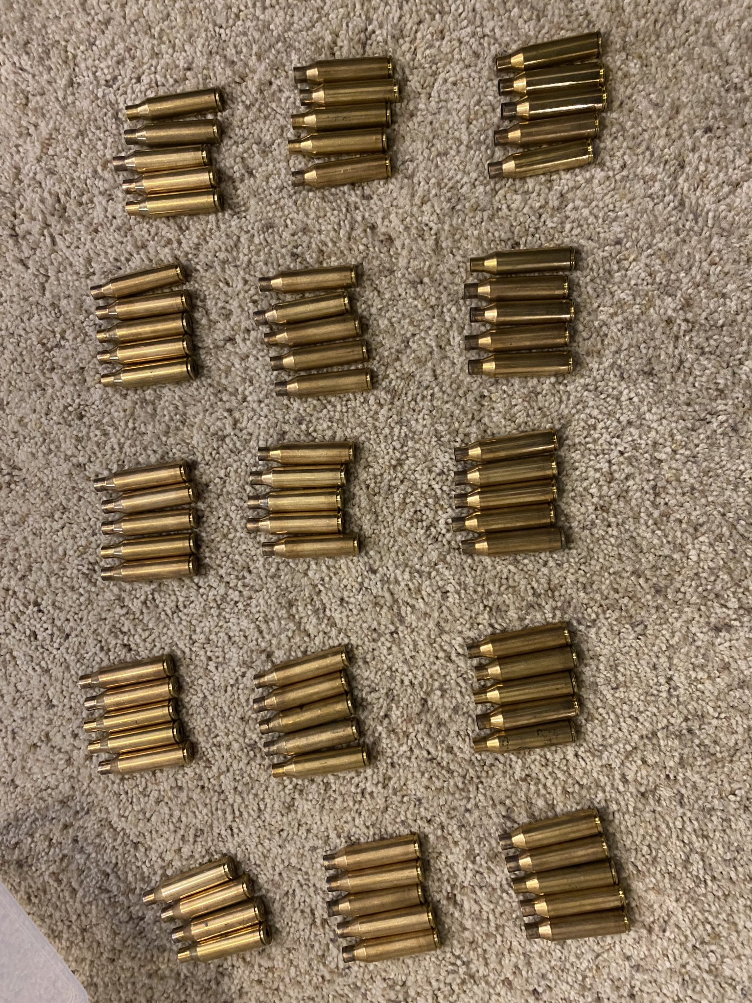 64 One-time fired Norma Brass Im asking for 70 dollars for them but who ever bought the 338 barrel gets them for 40 dollars! Plus 20 dollars for shipping as well if purchased them separately. Whoever buys them with the barrel will be free for shipping!