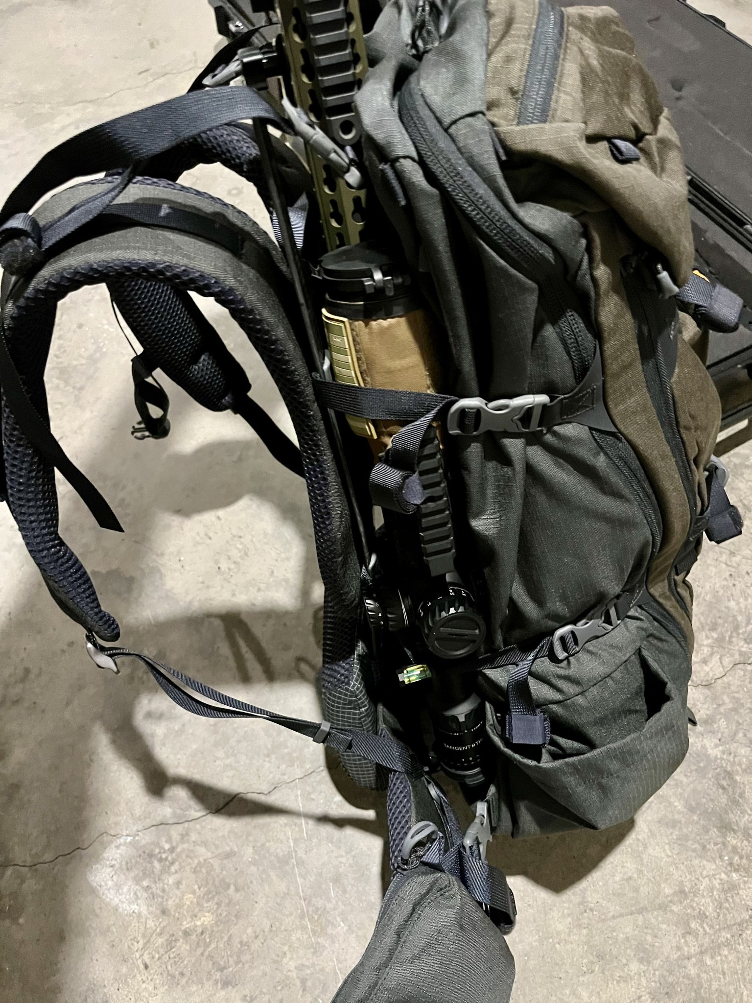 I am currently looking at trying to put the Eberlestock Bolt Action Scabbard in between the frame and the pack.