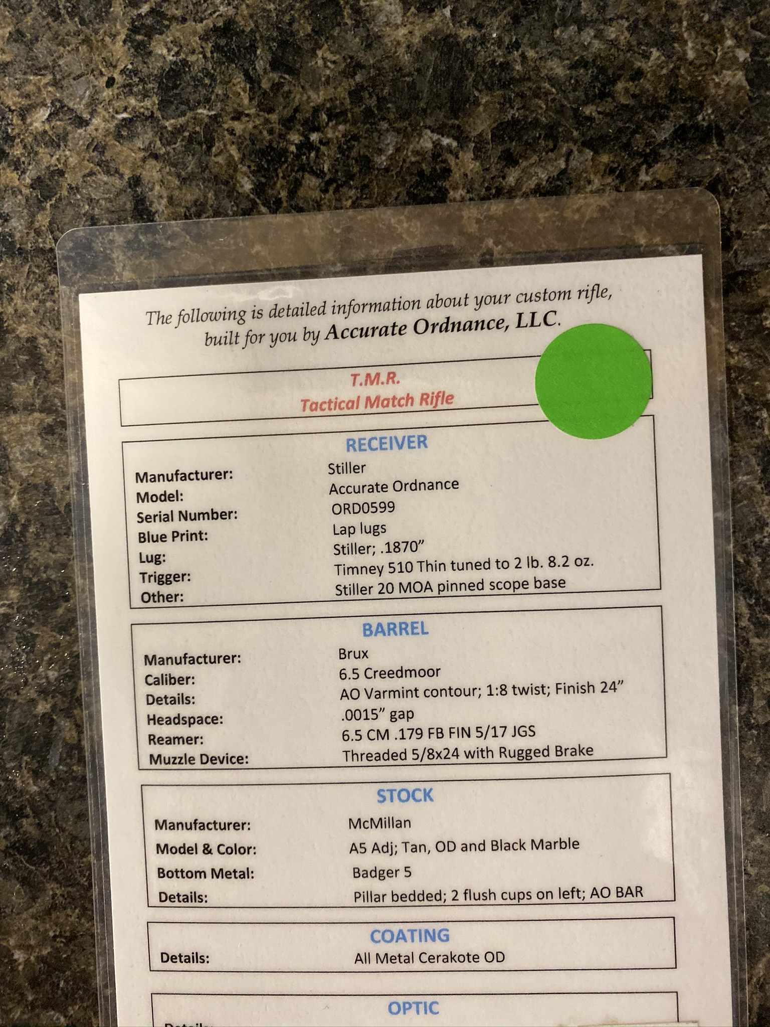 Accurate Ordnance 6.5 TMR w/ Nightforce 7-35 ATACR. Stiller Action, 20 MOA pinned base, Timney Calvin Elite,Brux 24” 1:8, McMillan A5,Area 419 Hellfire brake, and ARCA rail. Exactly 100 rounds on new barrel installed by AO, 400 rounds on action. I will sell as a package or will split up. I will only sell scope after rifle sells. Sorry. If the ATACR is a budget buster, I also have a NIB FDE Bushnell XRS2 4.5-30X50 w/G3 reticle that I could create a package with. $6700 as described with ATACR, $4800 with Bushnell XRS2, or $3700 rifle only. Only trades I’d be interested in would be a TT 5-25 w/Gen 3 XR or a Trijicon REAP IR Model IRMS-60-2. I could add cash on the Trijicon if needed. Feel free to text. Thanks for looking!