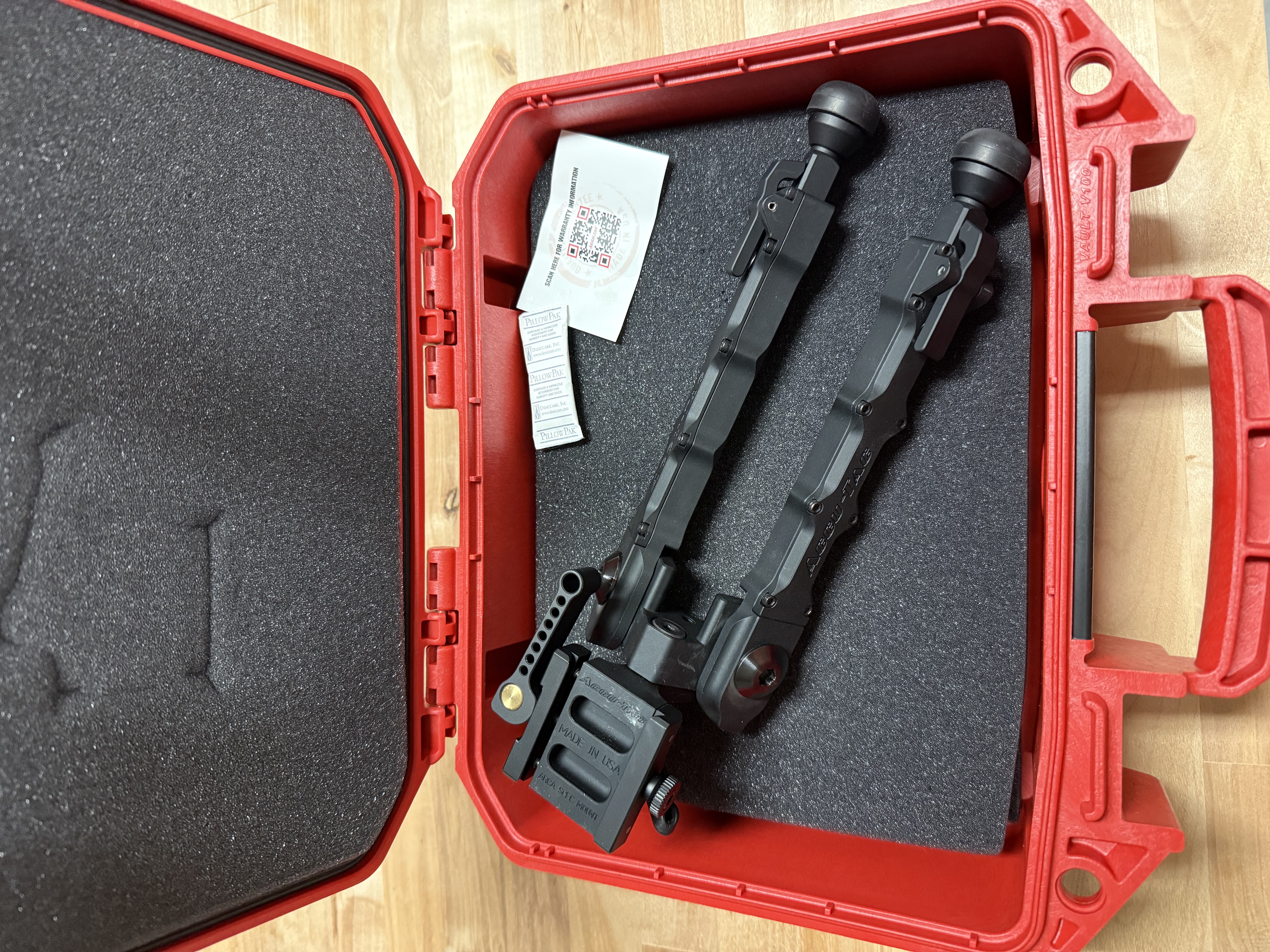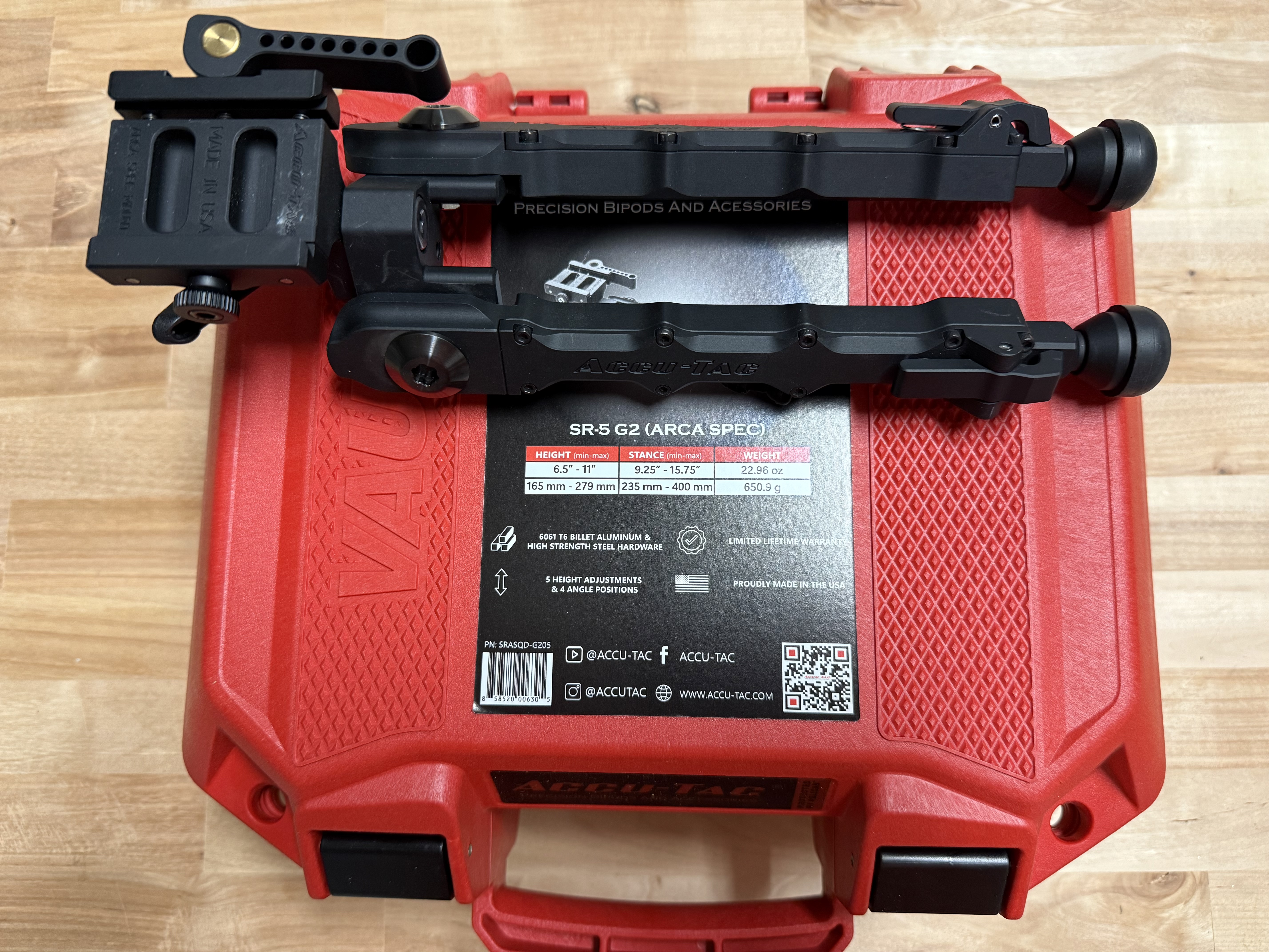Accutac SR-5 G2 Bipod with Arca and Pelican Vault hard case.