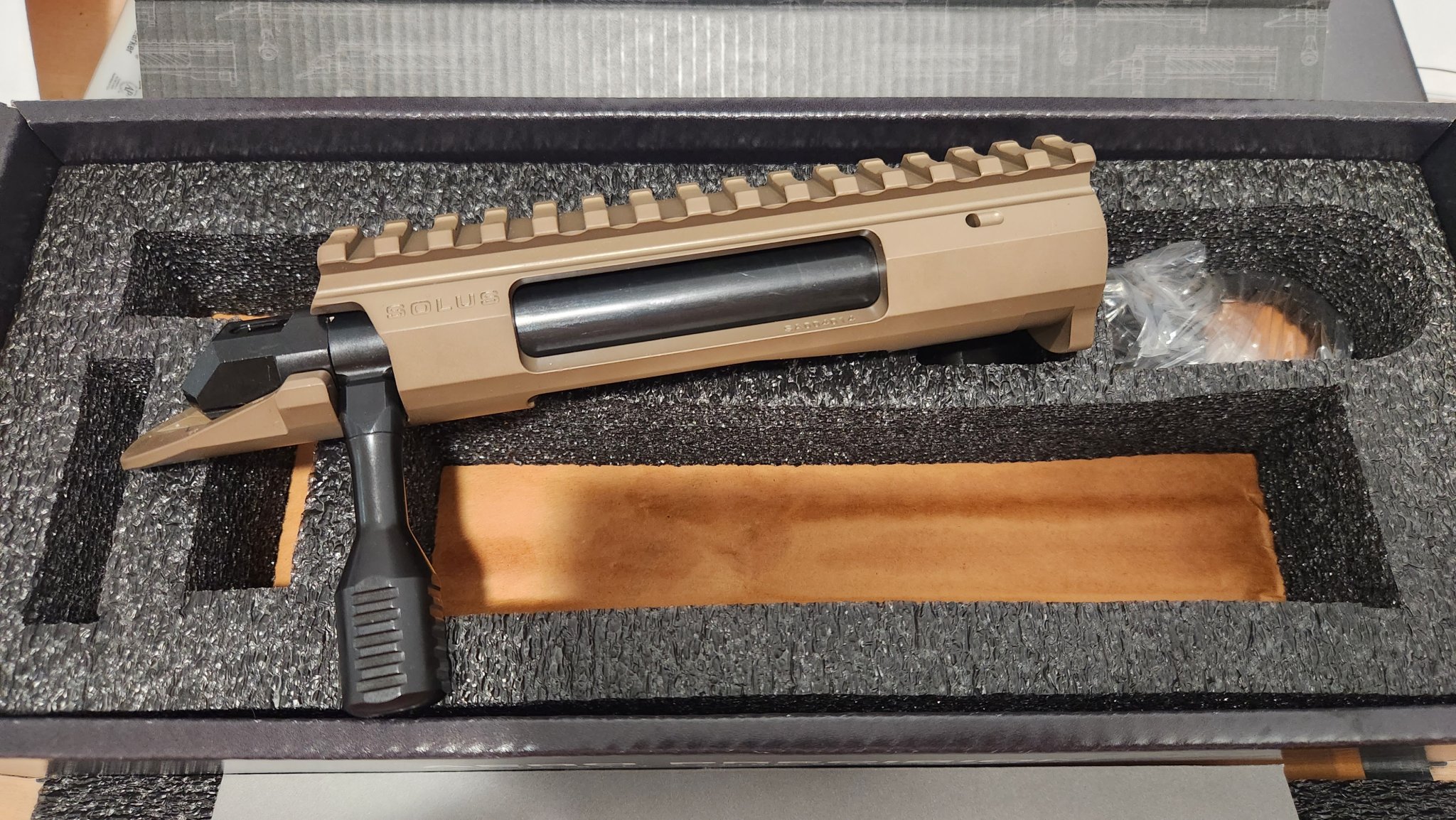 Solus right hand short action PVD FDE finish. Standard bolt face for 308, 6.5CM, etc. Brand new condition.