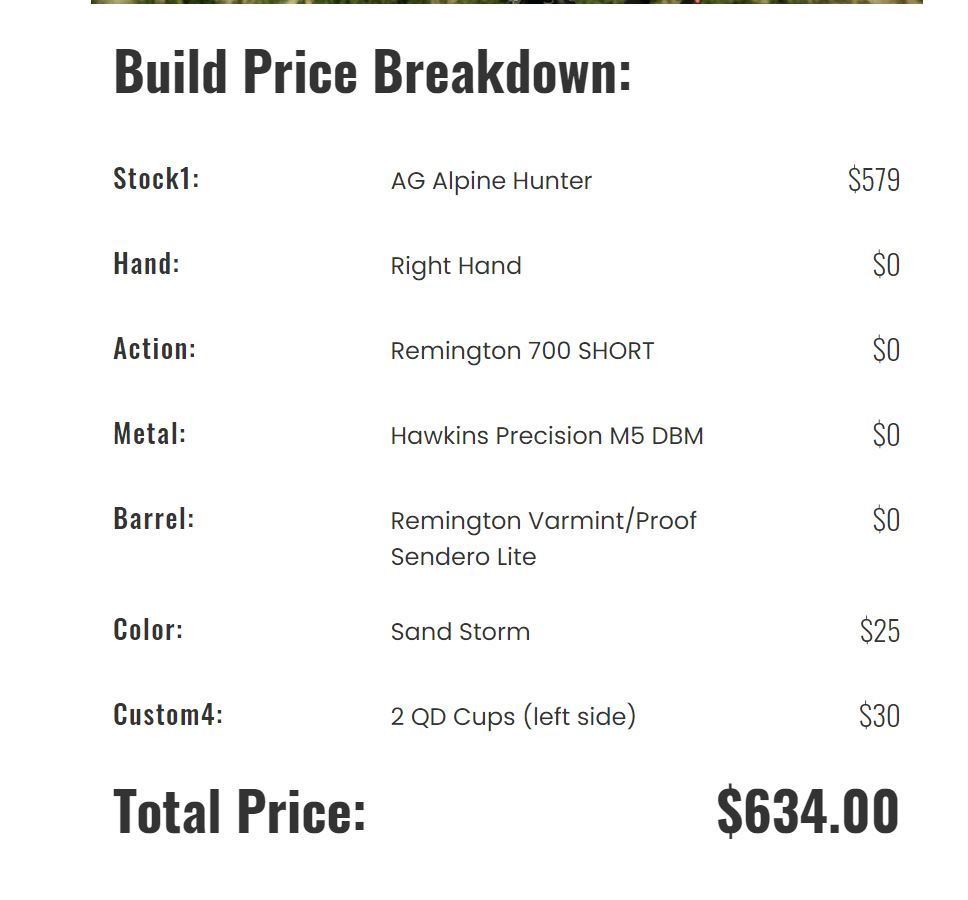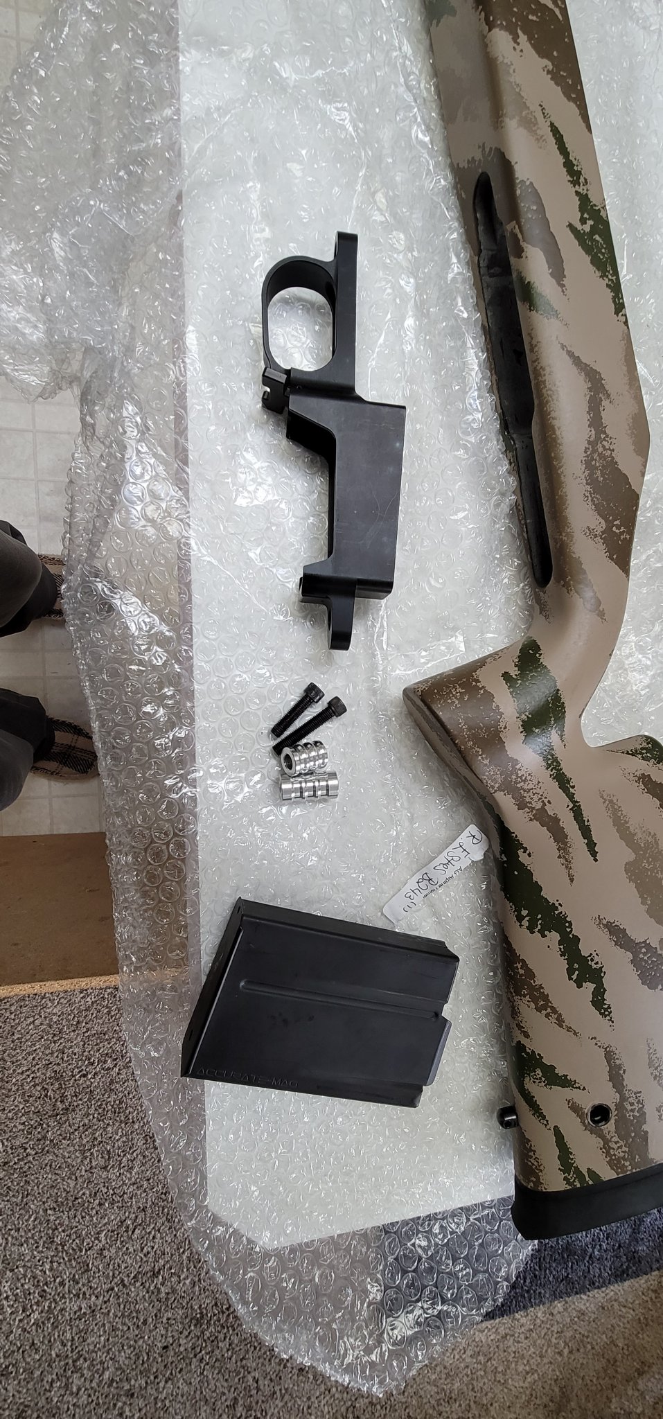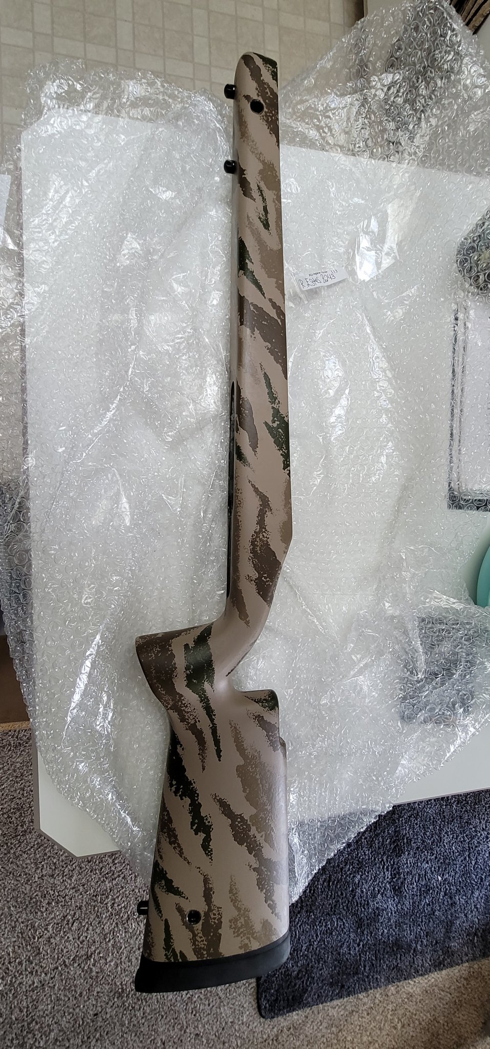 I have a brand new AG Alpine hunter for Remington 700 Short Action (or custom variants) in "sand storm" color. It has two flush cups left side, 13.5 LOP, M5 bottom metal cut.
