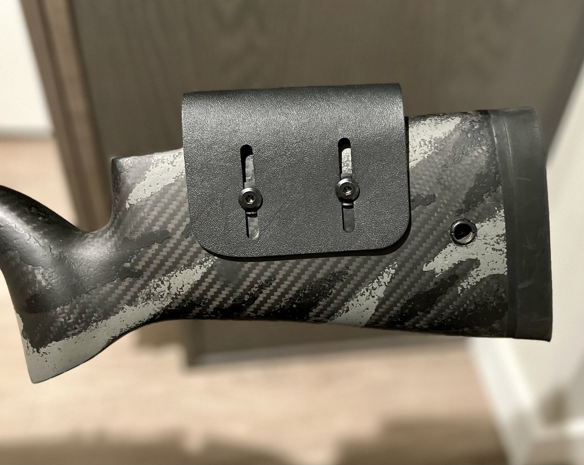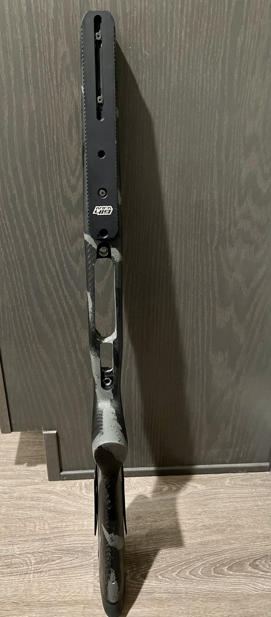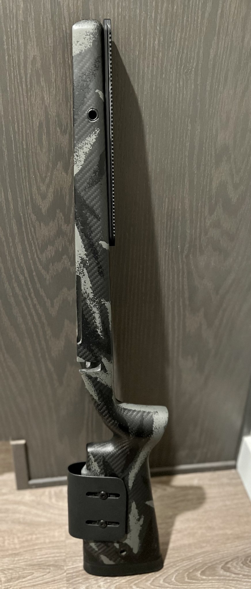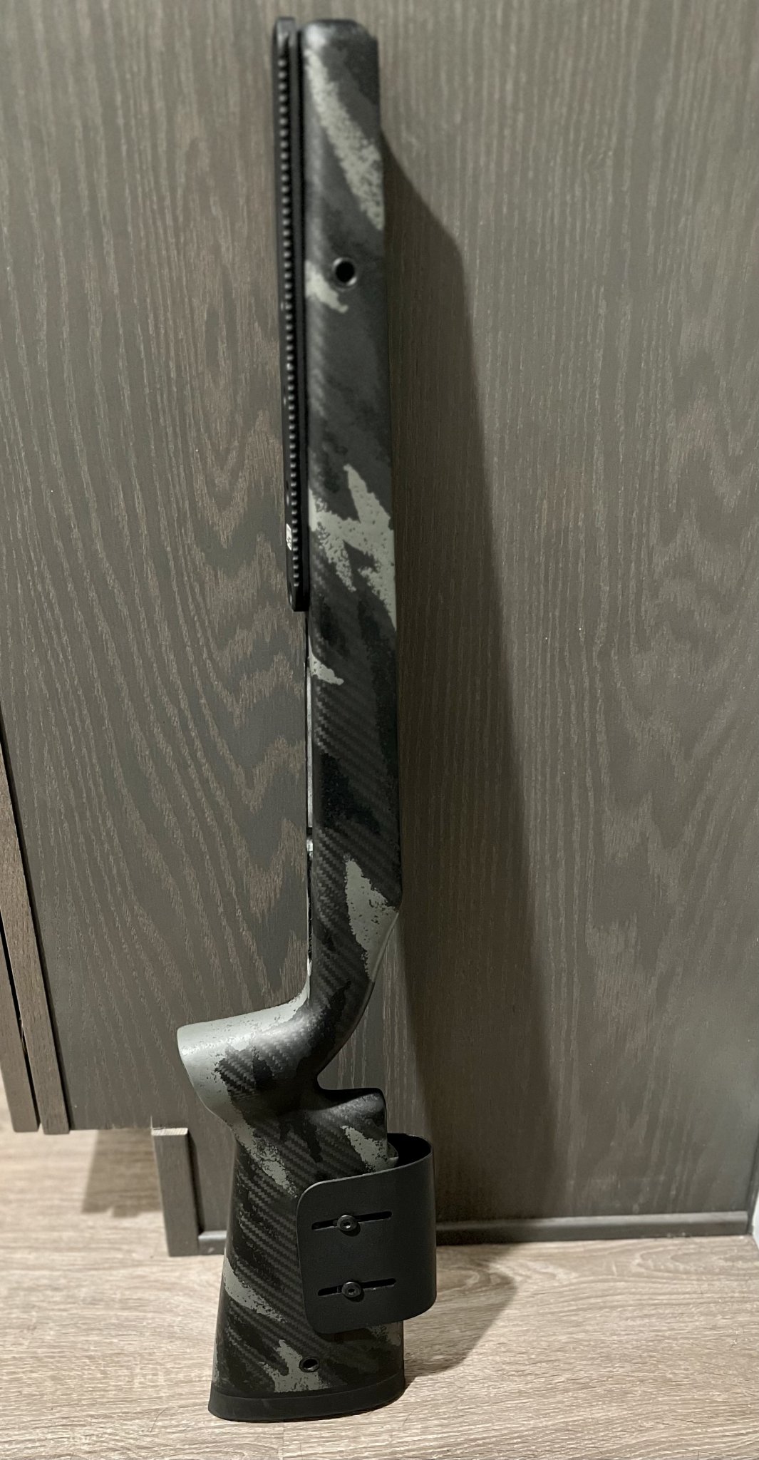 For sale used AG alpine hunter carbon stock Rh LA. Proof Sendero contour barrel channel and inletted for M5 bottom metal. It’s bedded for a Bighorn/Zermat Ti3 long action right now but you can remove the material and rebed it for whatever action you have. I also installed flush cups on both sides and added an adjustable cheek riser. Comes with an Area 419 arca rail for $680 Or $640 without the rail shipped. TYD.