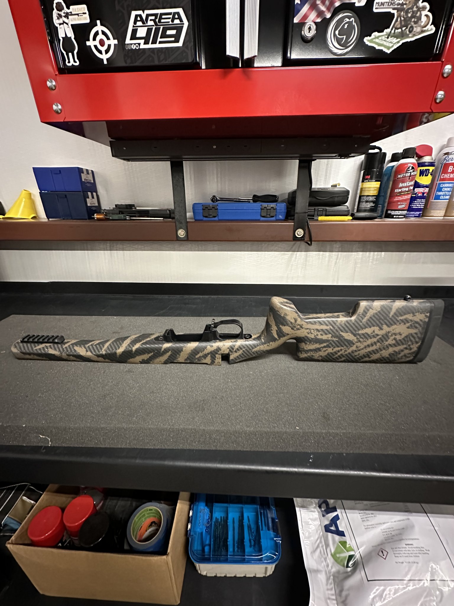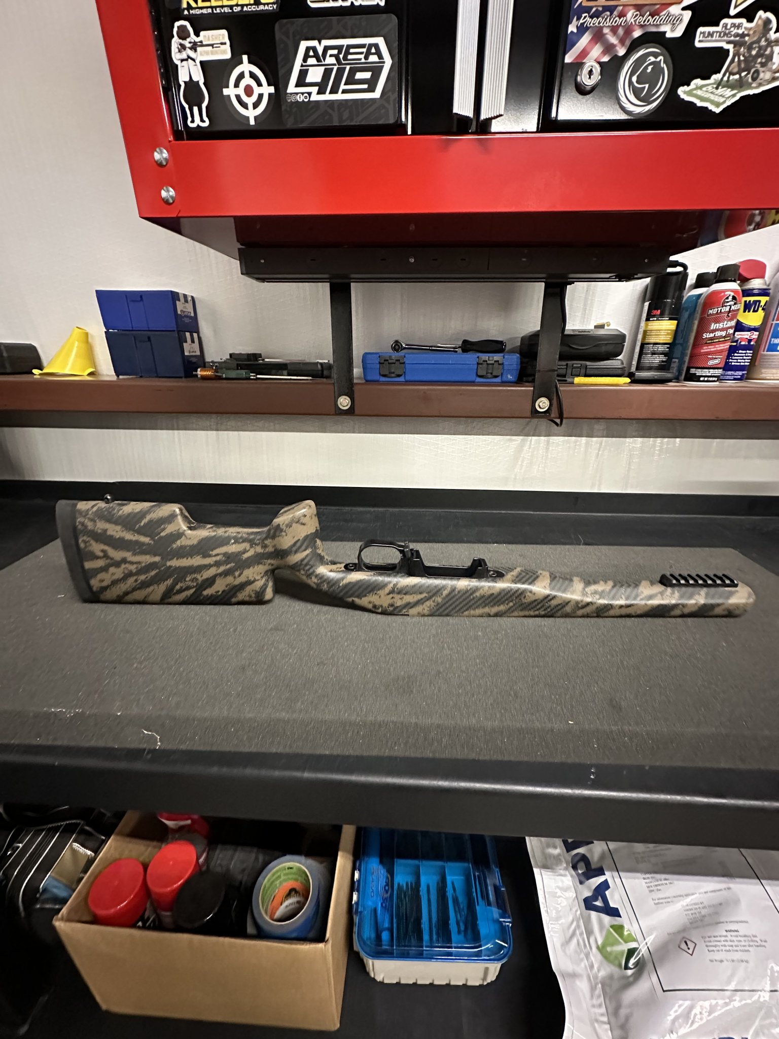 Have a AG Composites chalk branch for sale in carbon bronze camo pattern. Remington SA, bedded and barrel channel has been opened up a little for a rem heavy varmit. Comes with Hawkins M5 bottom metal no mag. $650