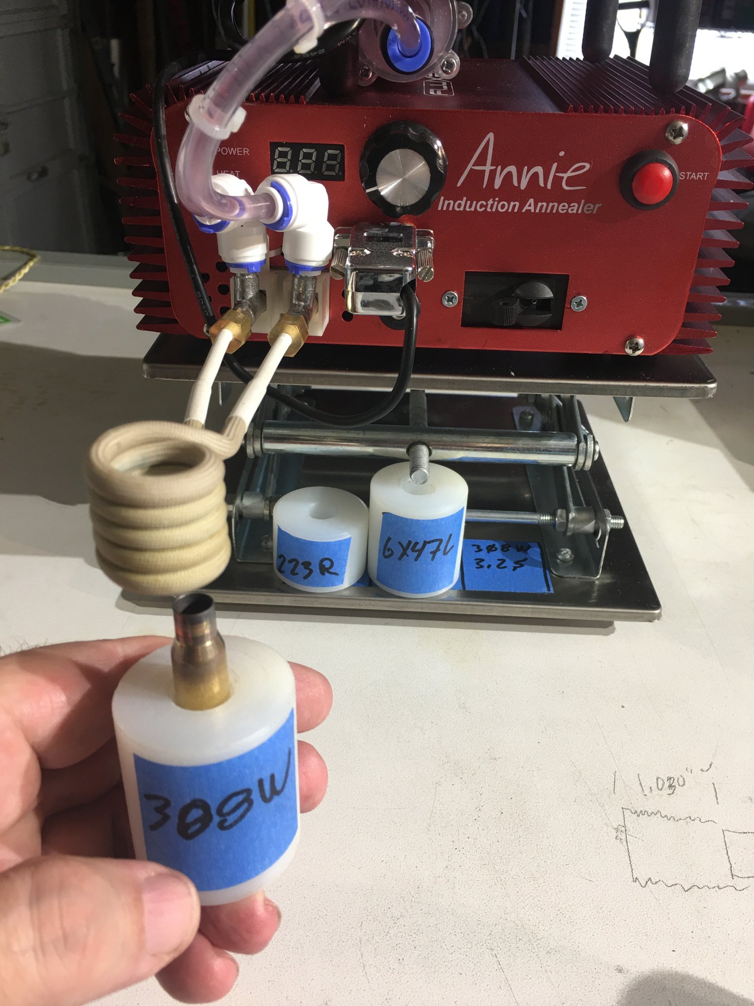 I have an “Annie” Induction Annealer. I tried the flame type and salt bath type, which in my opinion are too inconsistent/temperamental/error prone and in the wrong hands, dangerous (by comparison to the Annie). The Annie is Induction and works like a champ.