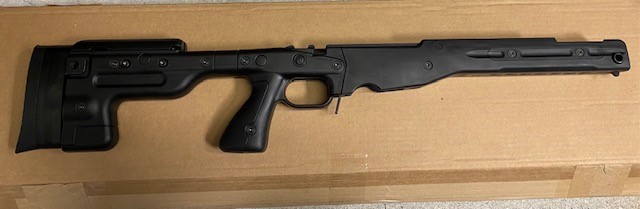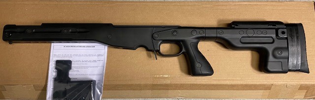 AI AT Chassis - Black (26694) Fixed Stock v1.5, Remington SA, came off V-22 that was delivered in December. Right around 800 rounds of .22lr through it, marks on bottom are from the only match I shot with it (see images). BT-19 Spigot bought 6 weeks ago.