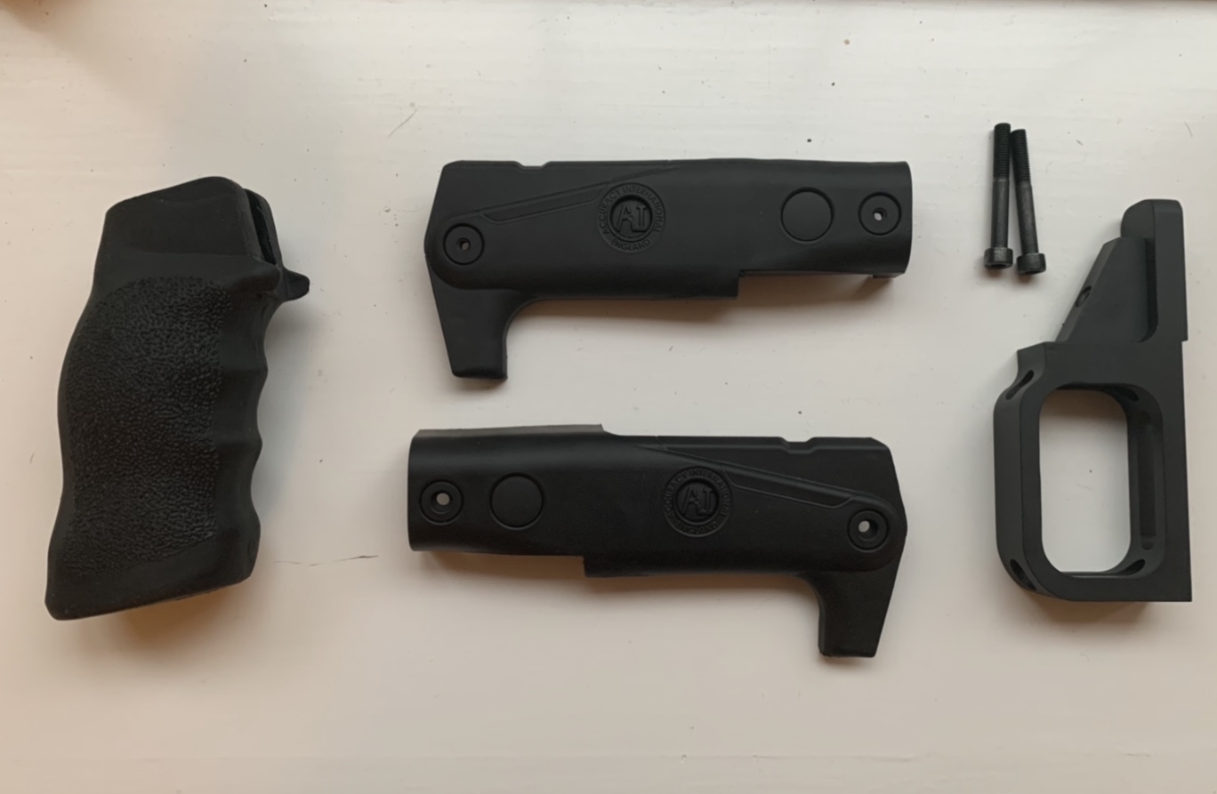 Pics show ergo grip obviously that isn’t included, UK sales come with an A2 standard AR grip.