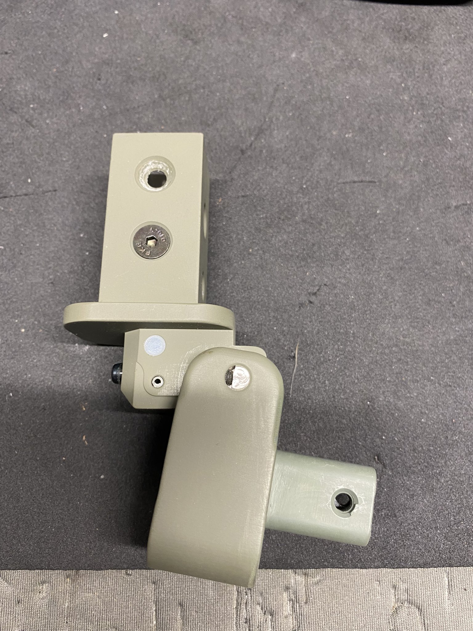 SOLD**Sage Green AX hinge. Folds to right. I’m a lefty, replaced this with left side folding. Never mounted on rifle. Removed buttstock. Touched up area with Sage Green paint where buttstock was removed. Pictured.