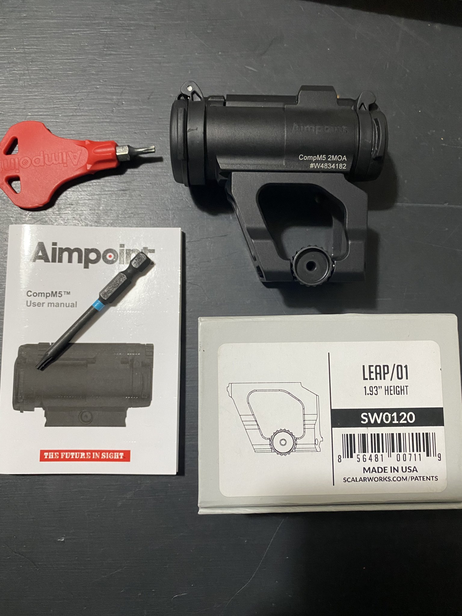 Selling a new comp M5 with a new scalarworks leap 1.93 mount. M5 was mounted but never used/shot with. The leap mount was mounted but never used/shot with. It was missing a screw so it will only come with 3. Scalarworks sells them for around 7 a pack. 650 shipped.
