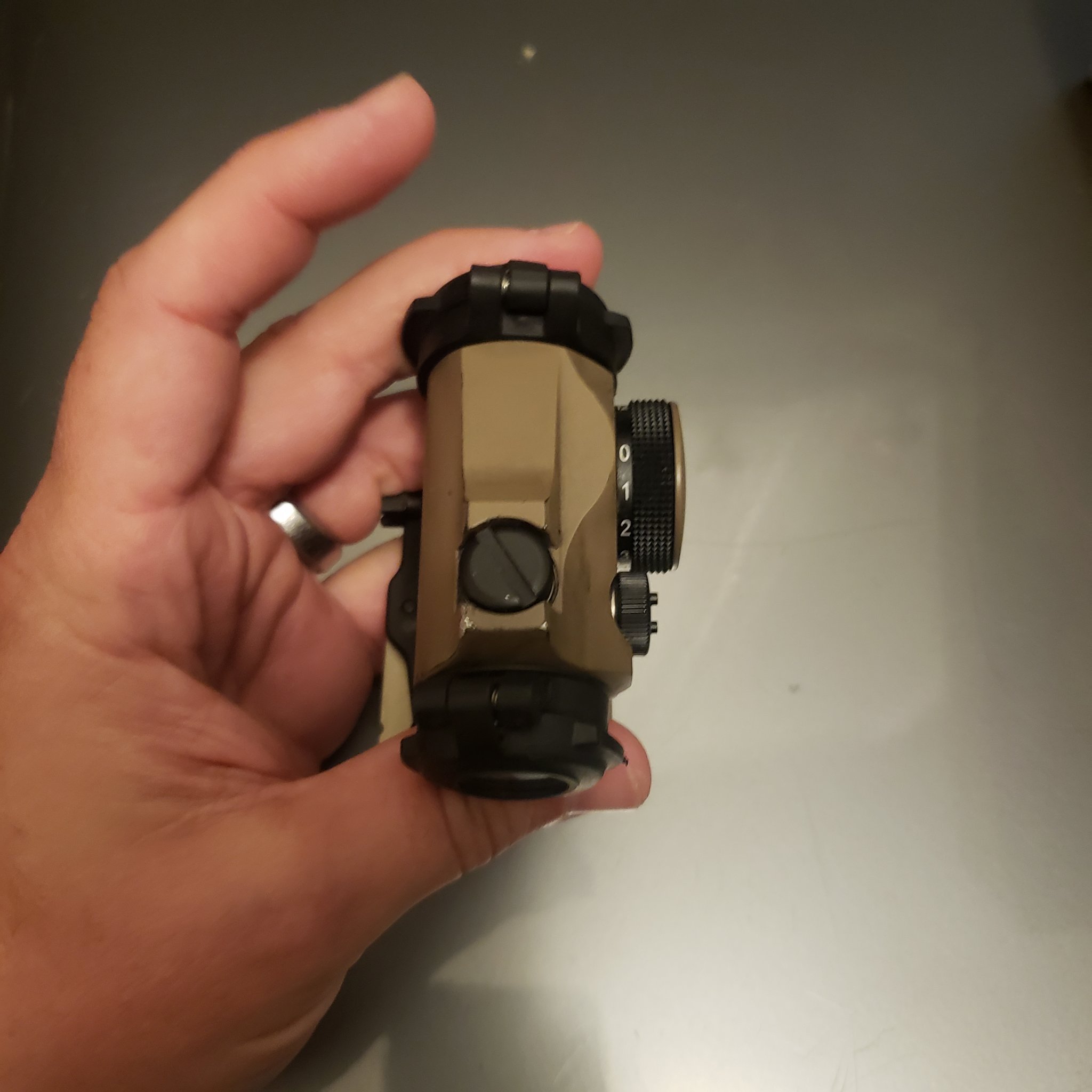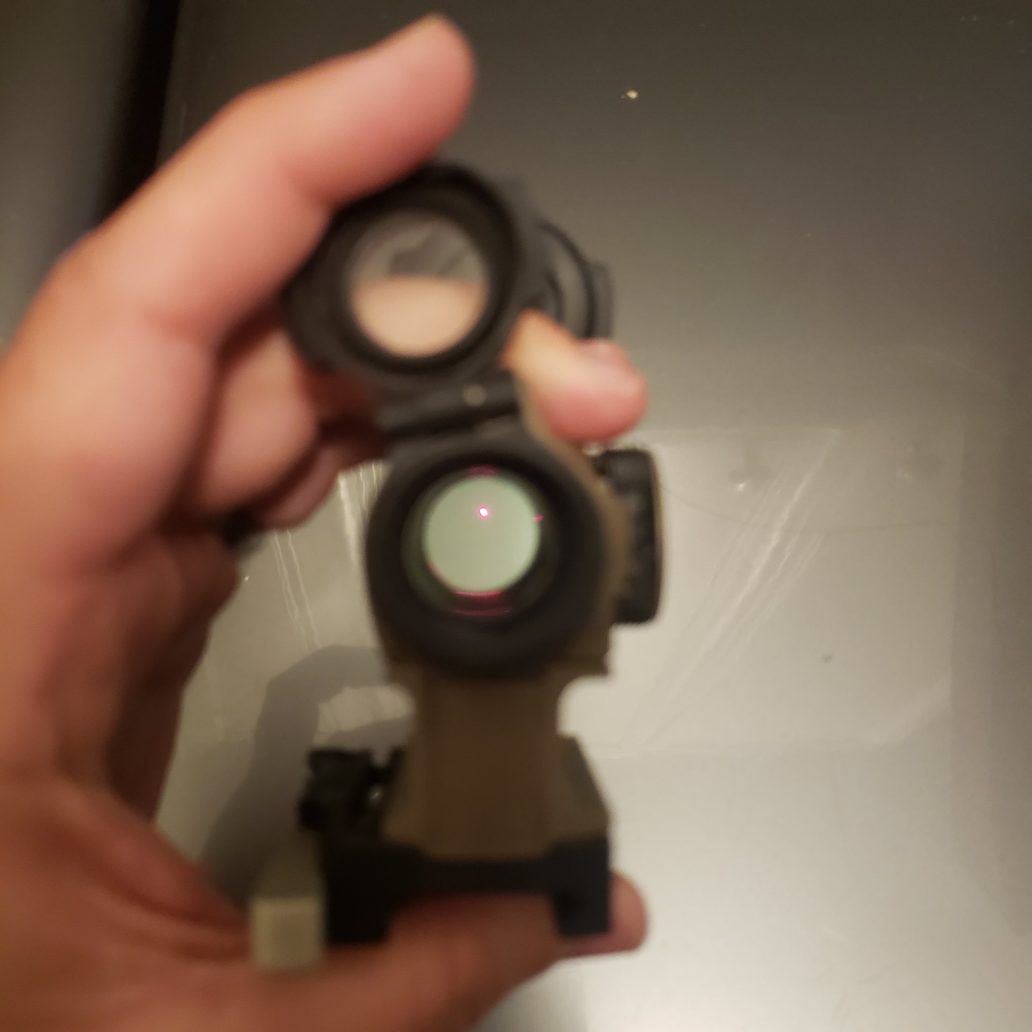 Utilized T2, has some scuffs and rashes. Was originally painted black but removed 99%. Comes with the QD Mount and lens covers.