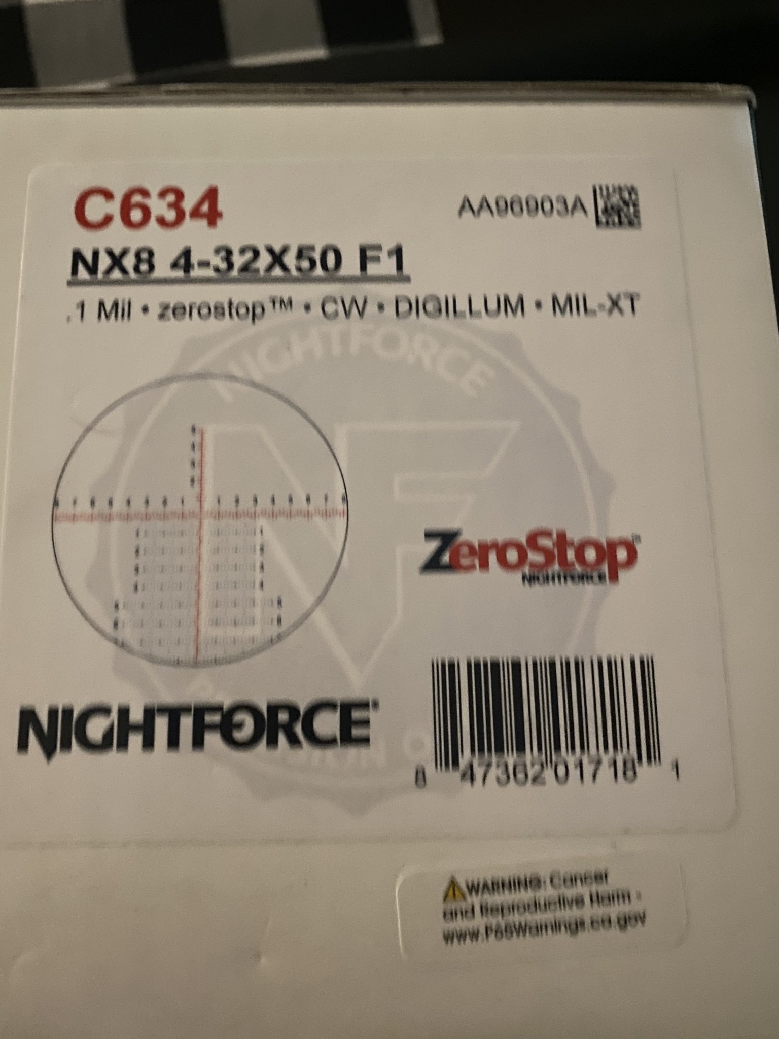1. New in box Nightforce NX8 4x32x50 F1 Mil XT reticle scope. Box was opened to verify contents only. Never mounted never fielded, never anything but sitting in box. All stickers, lens caps , manual , etc. 1850.00shipped CONUS. SPF