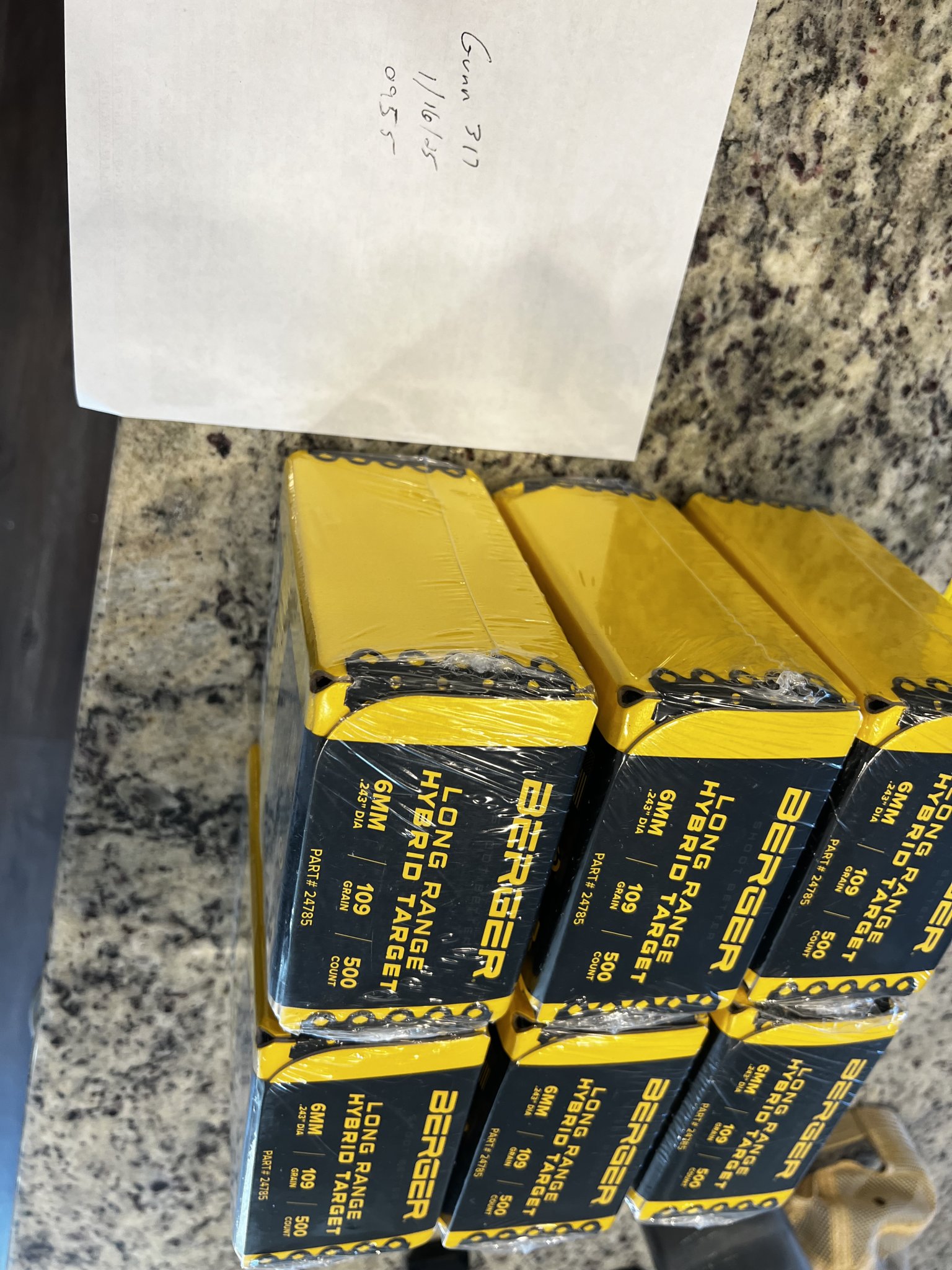 I am dumping a bunch of gear. Just not shooting like I used to. I have 2500 Berger 6mm 109 hybrids I would like to sell. 5 boxes same lot
