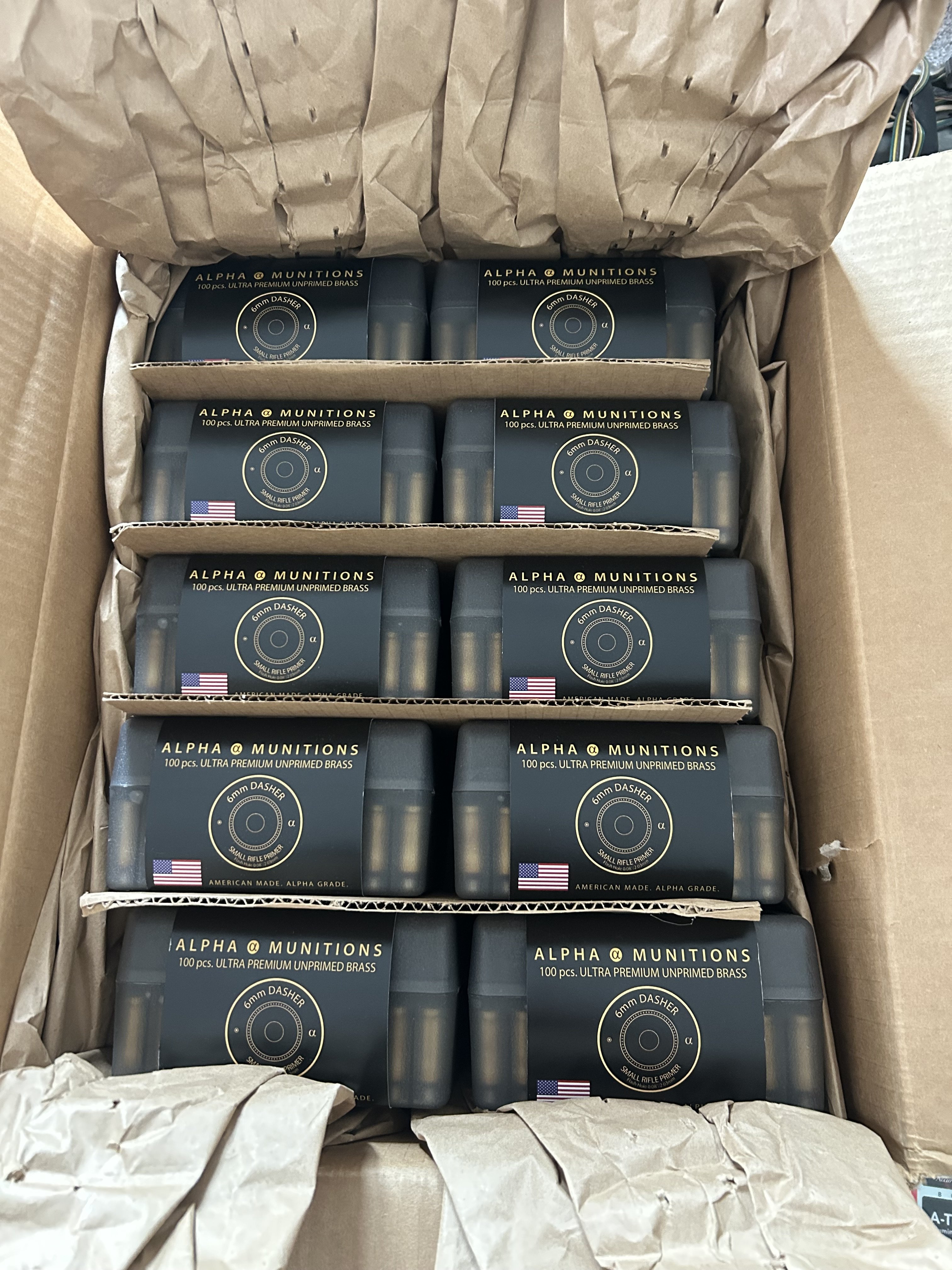 Case of 10 - 100 round boxes of new Alpha SRP Brass.