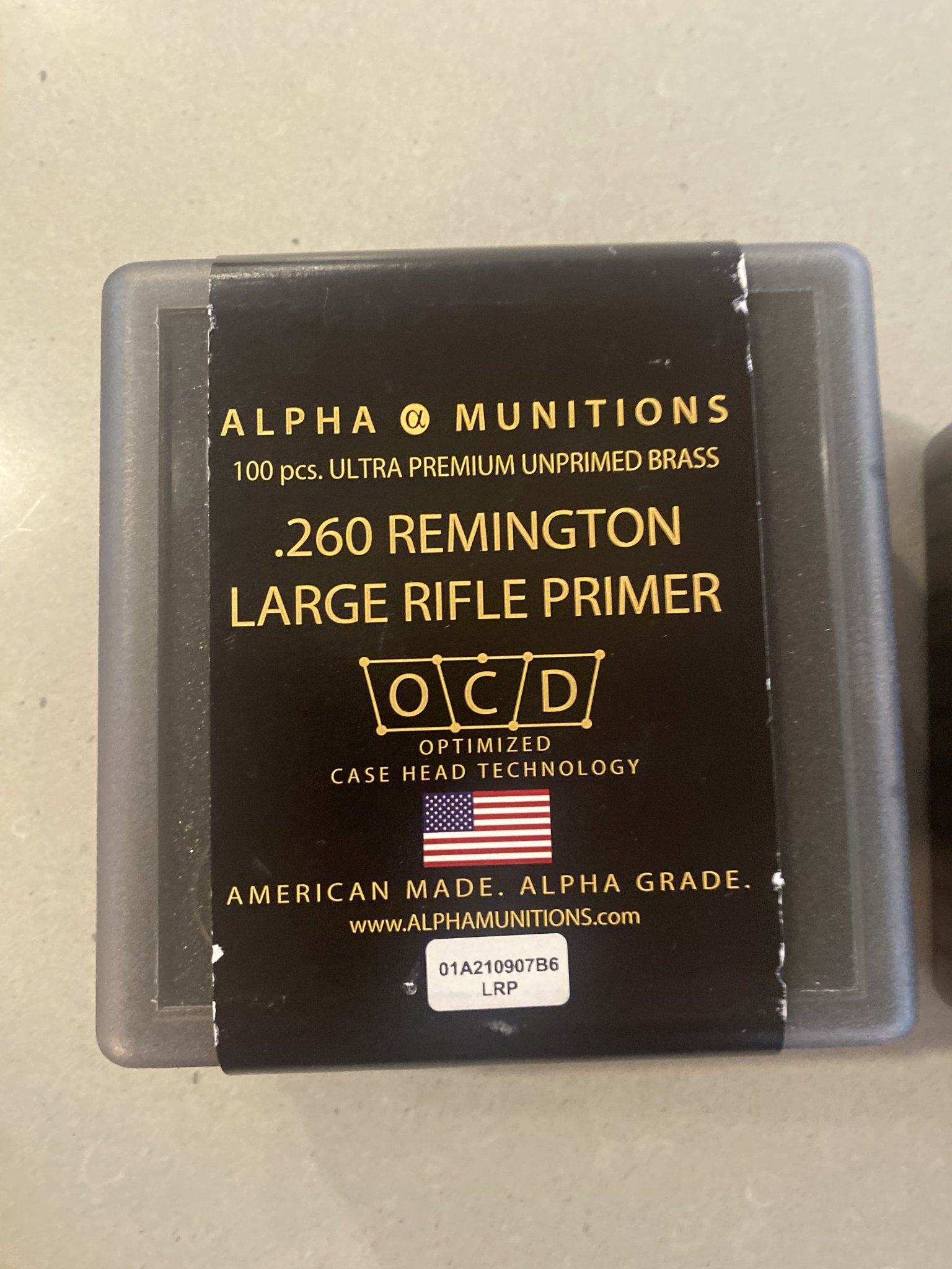 Reloading Equipment Alpha Munitions 260 Rem Large Primer 2 boxes Brass