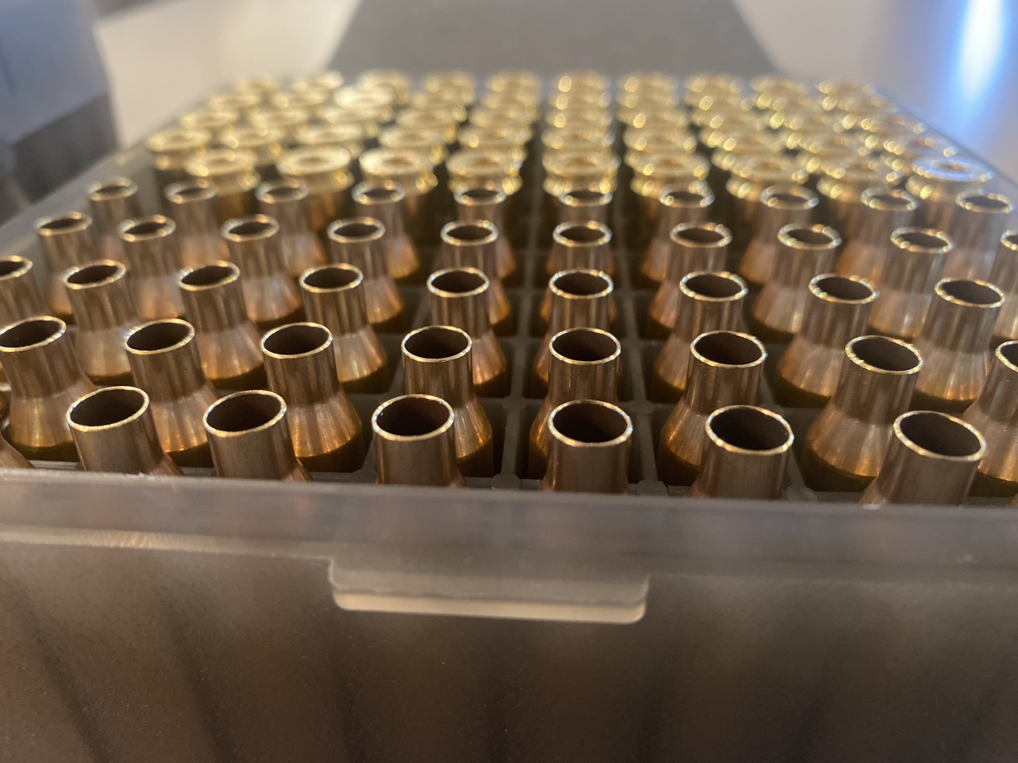 The other box opened, 1 piece sacrificed to the AMP annealer, and 50 pieces lightly touched with chamfer & debur
